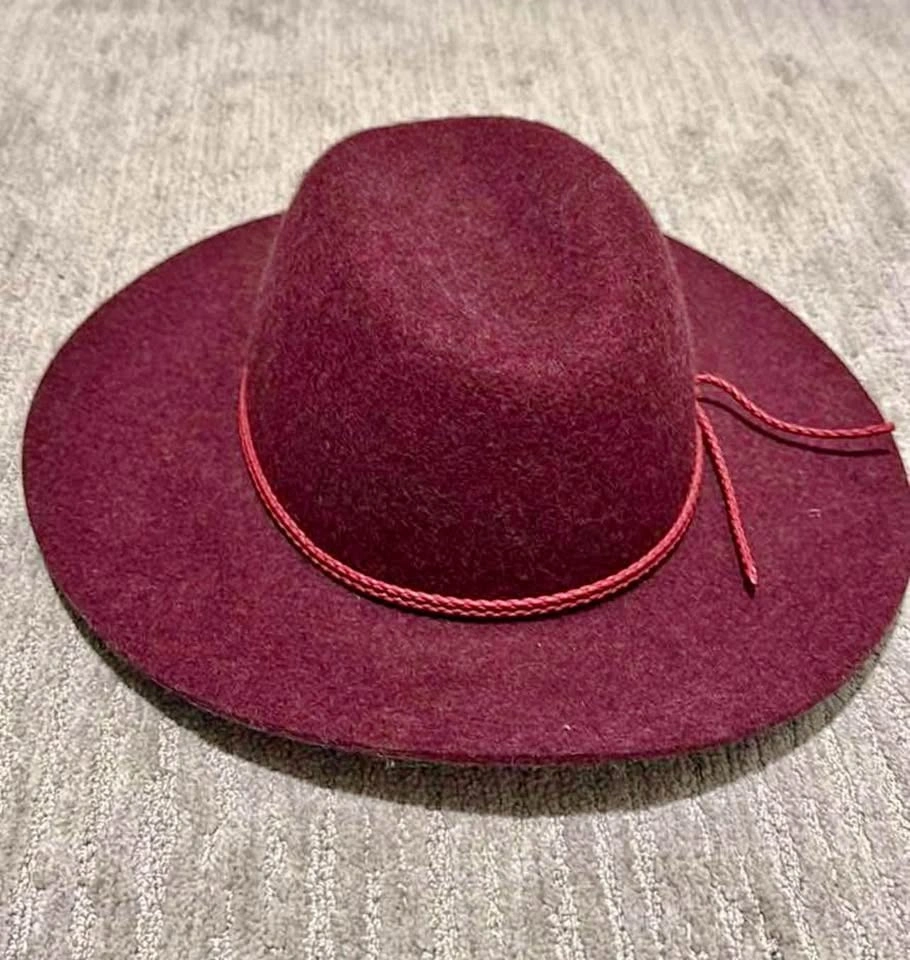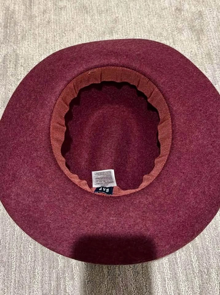 Add a touch of timeless style to your wardrobe with this authentic GAP wool hat in a rich burgundy color. Crafted from soft felted wool, this wide-brim hat is both stylish and versatile—perfect for fall outfits, casual days out, or making a statement at special events. ✨ Details: • Brand: GAP • Material: 100% wool • Color: Burgundy (deep wine red) • Condition: Like new – only worn a couple of times, very clean • Features: Wide brim with matching cord detail around the crown 💡 Great for styling with coats, boots, or layered fall outfits. A must-have accessory for boho, western, or chic street-style looks. Asking $25 OBO Pick up: Oakville, ON