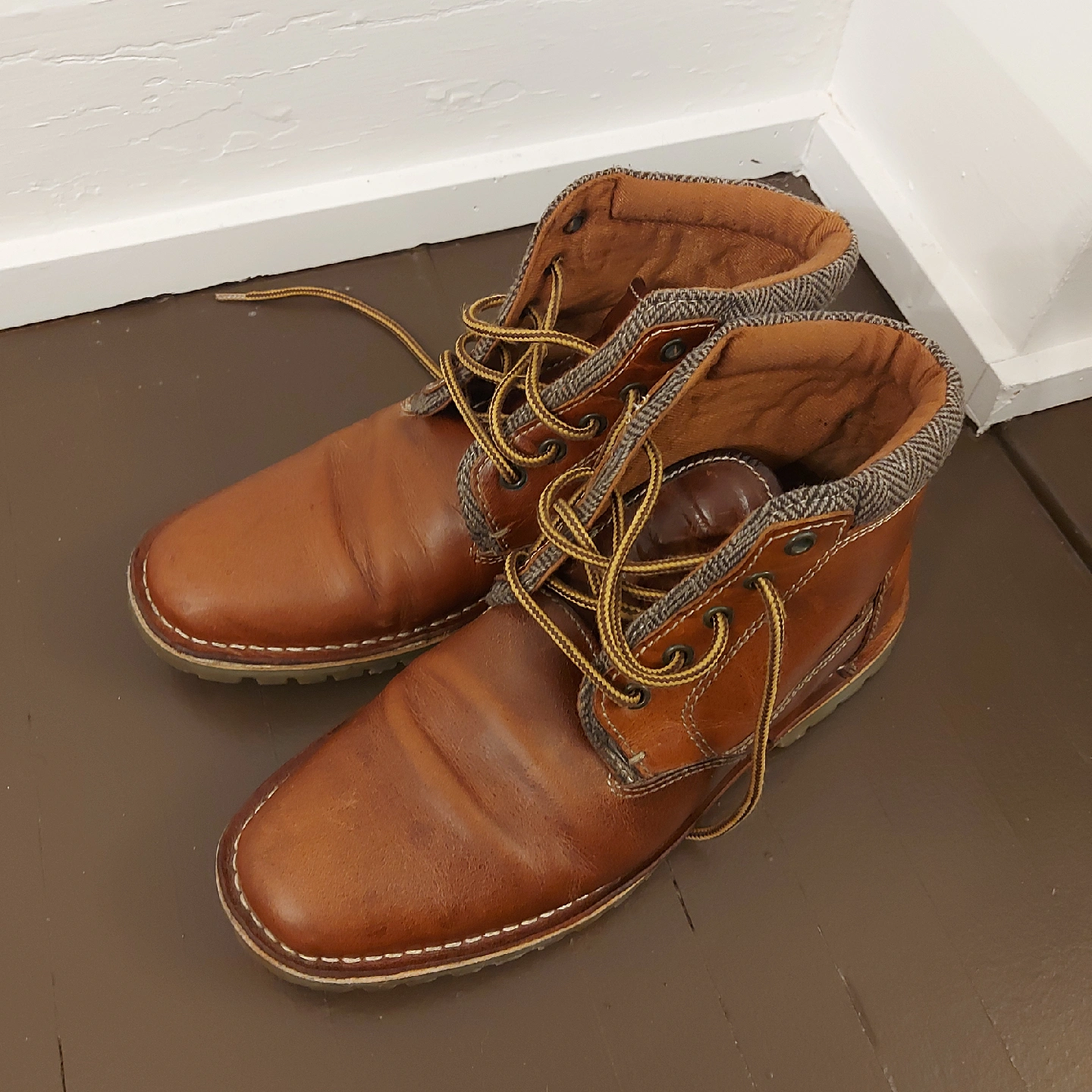 Selling a pair of brown leather boots! They're in good condition and ready for a new home. Perfect for everyday wear or outdoor fall adventures. men's Size 9.