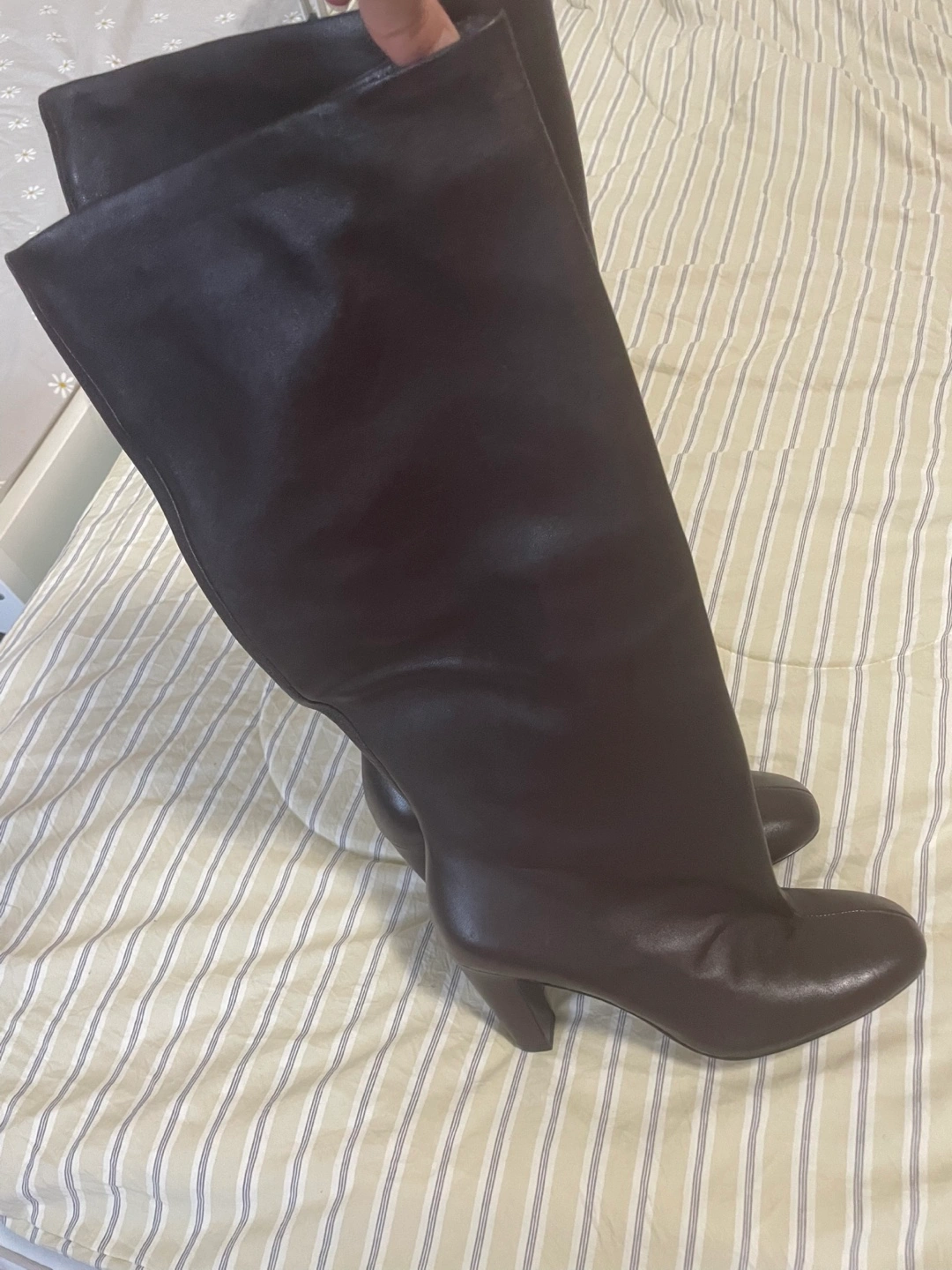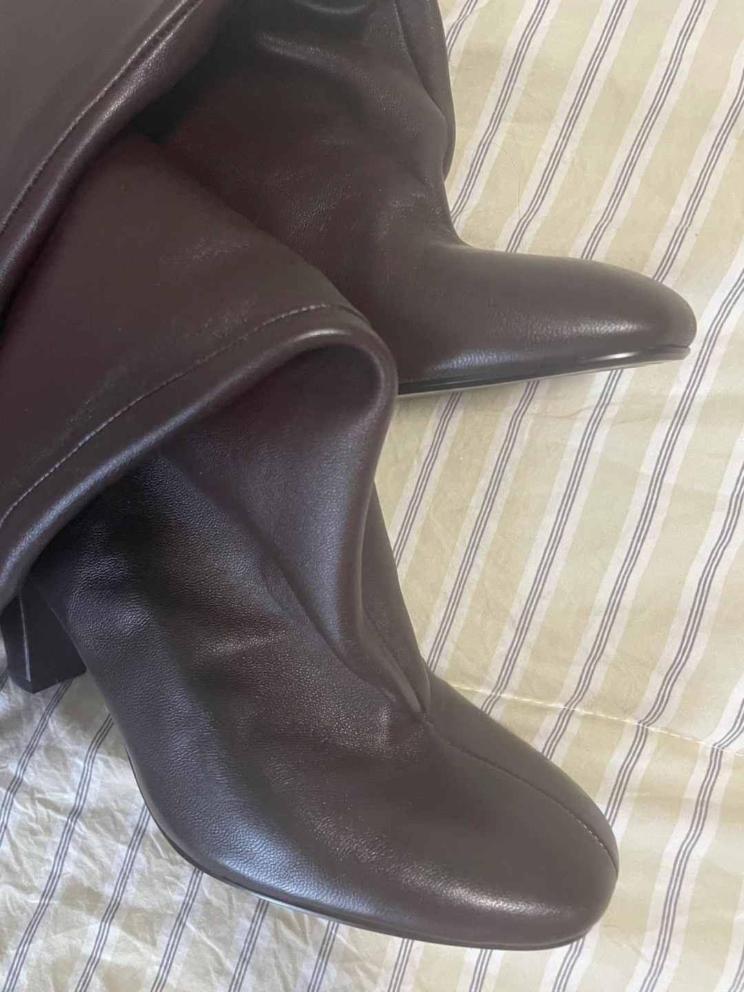 Selling a pair of Zara knee-high boots in a burgundy/brown colour! Size 39. They are made of real leather and feature a stylish heel.