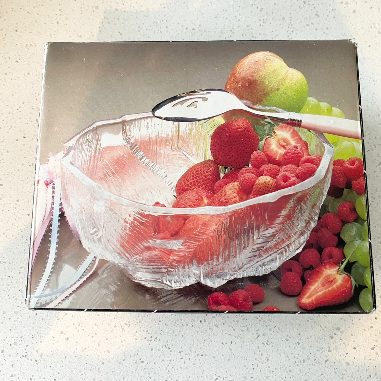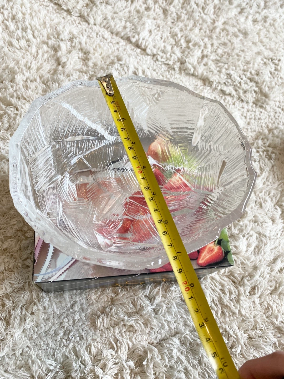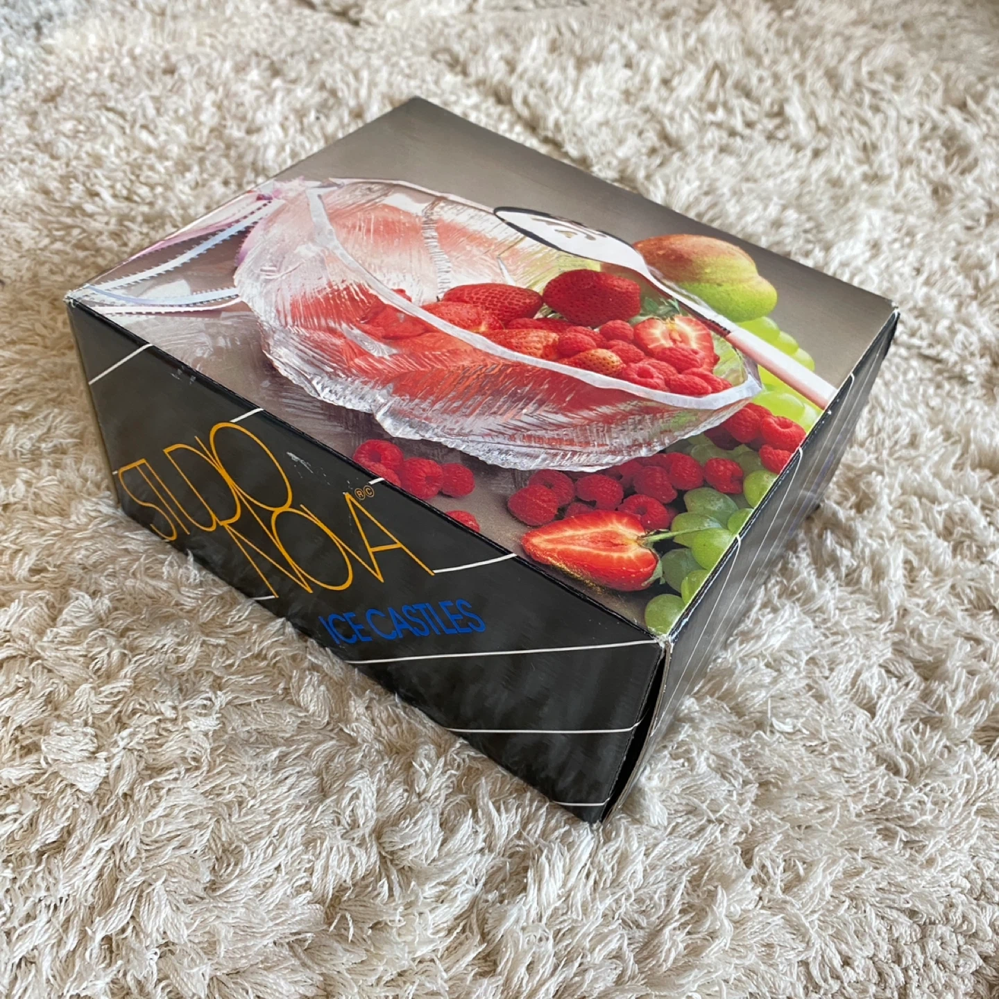 Never used but box has wear. Glass oval bowl 8.5” L Pick up only in Aspen SW