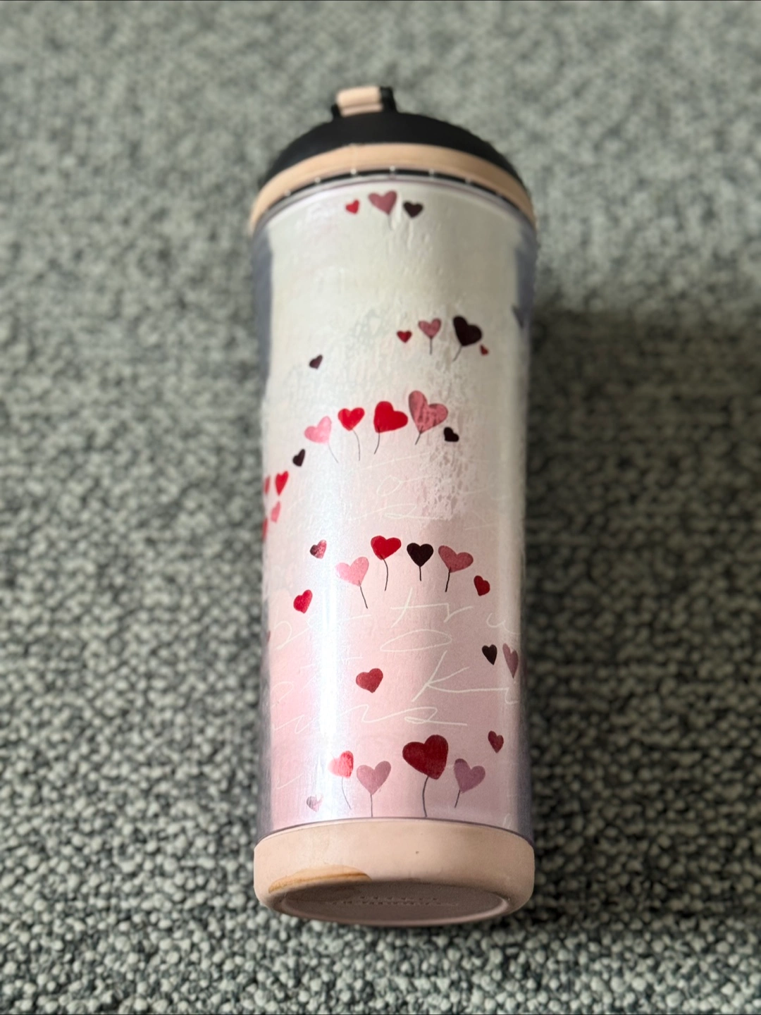 This is a cute Starbucks tumbler with a heart design! It's perfect for keeping your drinks cold or hot on the go. Great for everyday use!