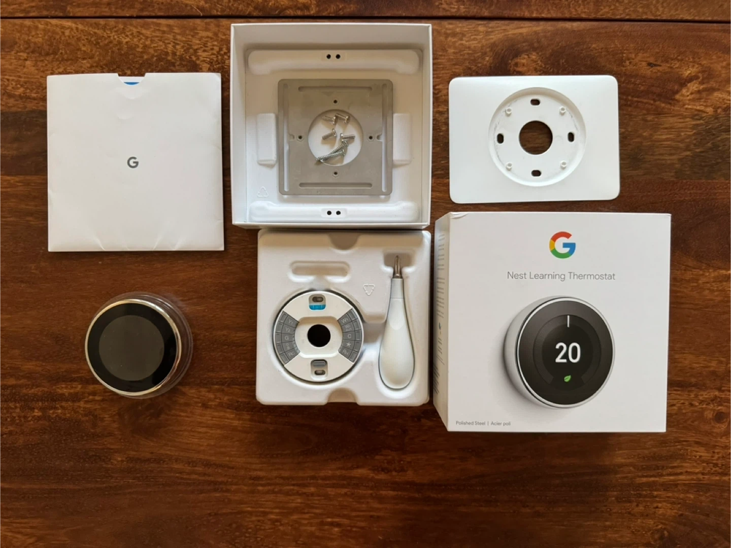 Selling a Google Nest Learning Thermostat in polished steel. It comes with the original box and all included components. Keep your home comfortable and energy-efficient with this smart thermostat!
