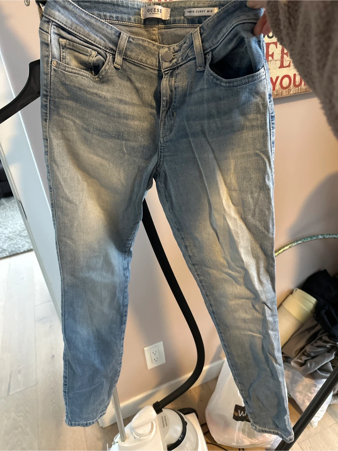 Selling a pair of Guess Power Curvy Mid jeans! They're in great condition and ready for a new home. These jeans are a light wash denim, perfect for a casual look. Feel free to message me with any questions!