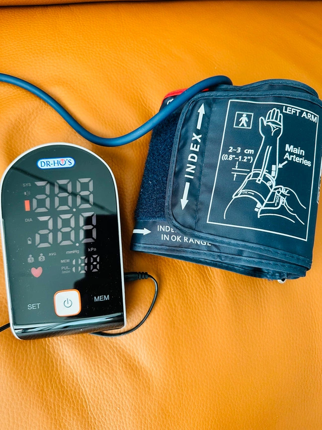 This is a pre-owned Dr. Ho's blood pressure monitor in excellent working condition for accurate readings. This automatic digital monitor features a large display and one-touch operation, making it incredibly easy to use at home. It measures systolic and diastolic blood pressure, plus pulse rate, ensuring a comprehensive health overview. Key features: * Automatic operation * Large, easy-to-read display * One-touch start * Systolic, diastolic, and pulse readings Pick up in Richmond!