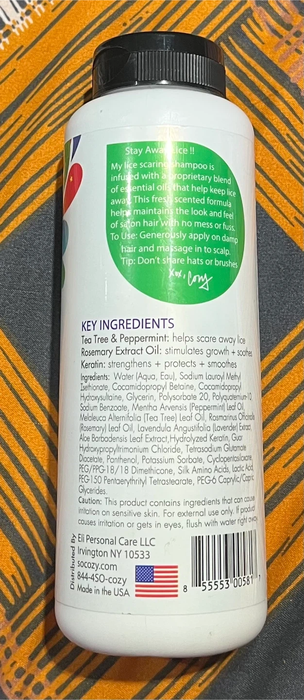 Keep those pesky critters away with So Cozy Kids Boo! Lice Scaring Shampoo! This shampoo uses tea tree, rosemary, and peppermint oils to scare away lice. It's free from parabens, sulfates, phthalates, synthetic colors, and propylene glycol. Perfect for keeping your little one's hair healthy and lice-free Multiple available