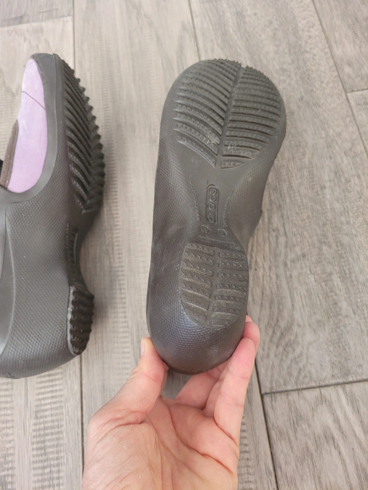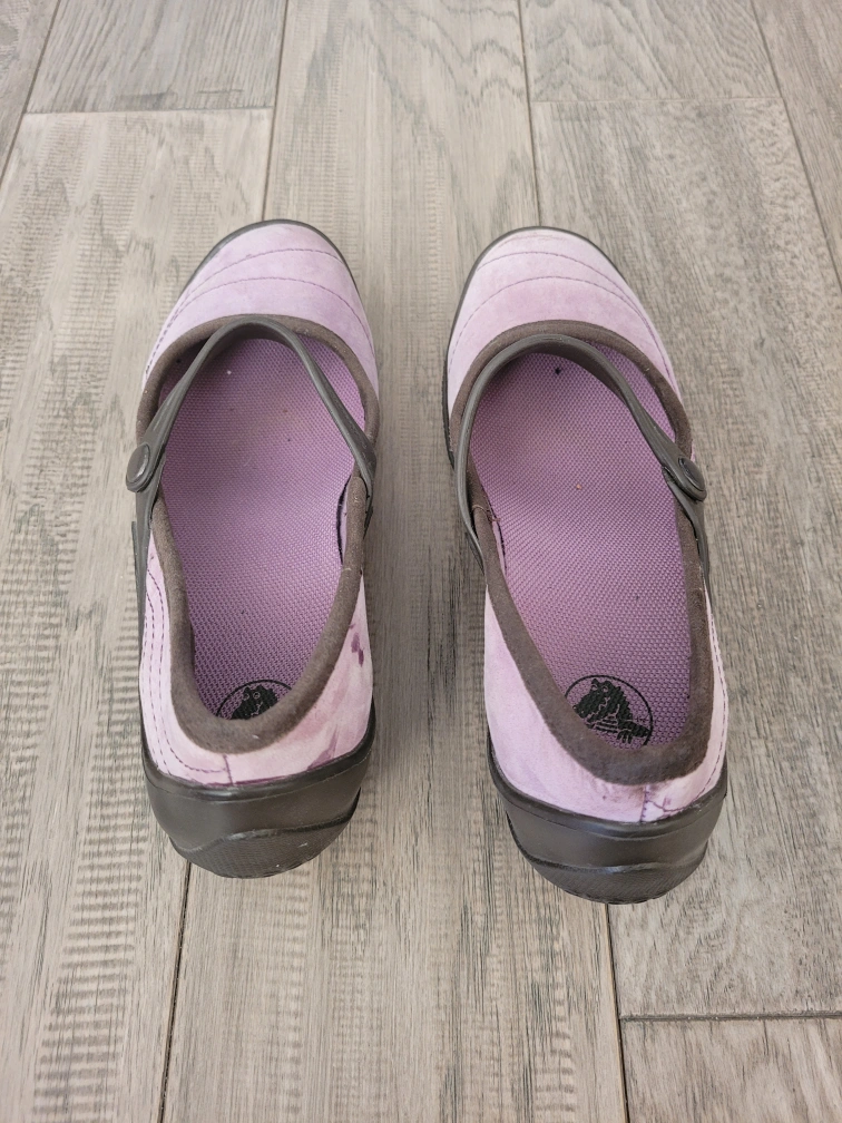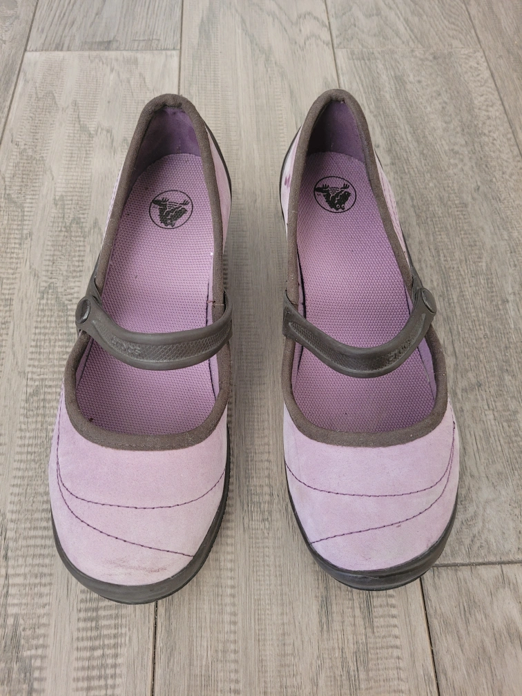 Crocs Women's Flats Size 6 Selling a pair of Crocs women's flats in size 6. They're a lovely light purple colour with brown accents. These shoes are lightweight and comfortable, perfect for everyday wear!