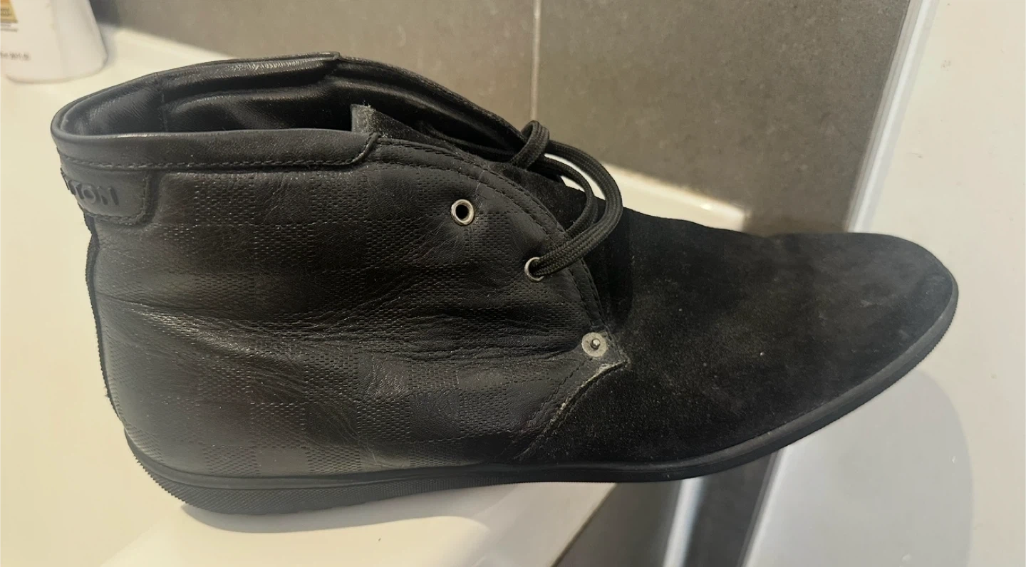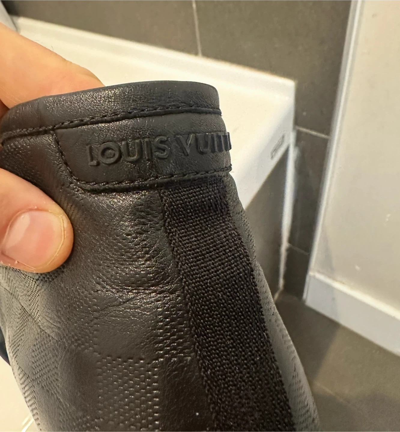 Selling a pair of Louis Vuitton ankle boots in black leather. They feature a stylish design with the Louis Vuitton logo subtly incorporated into the pattern. The boots are in good condition and ready for a new home! Pickup Vancouver weekday evenings 6-8 and all weekend at Manitoba and 2 Cash no try ons