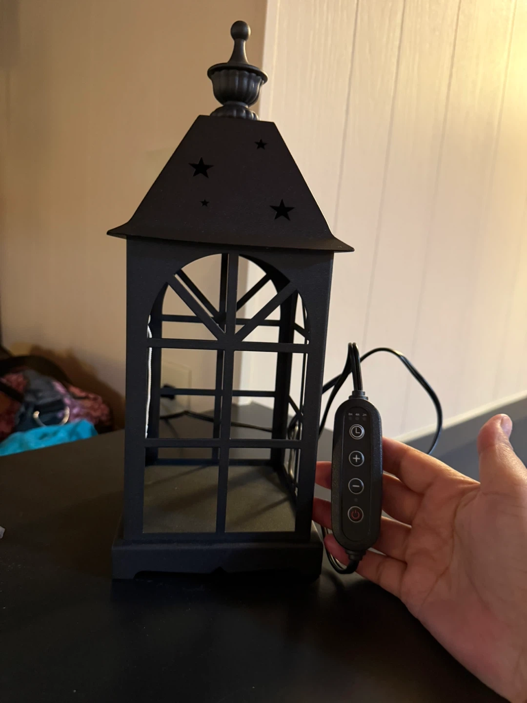 This black candle warmer lamp is perfect for adding a cozy touch to any room. It measures 30cm in height and 16cm in width and depth. The lamp comes with a control panel that allows you to set the timer for 2, 4, or 8 hours. It's a great way to enjoy your favourite candles without the flame I have 2 of them 1 for $30 both for $50
