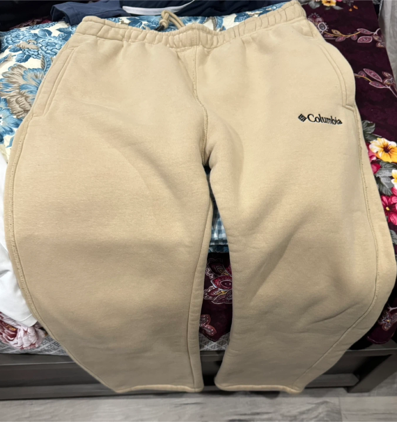 Cozy Columbia sweatpants in a lovely beige colour! Perfect for lounging or running errands. They feature a comfortable fit and the classic Columbia logo. Size: L