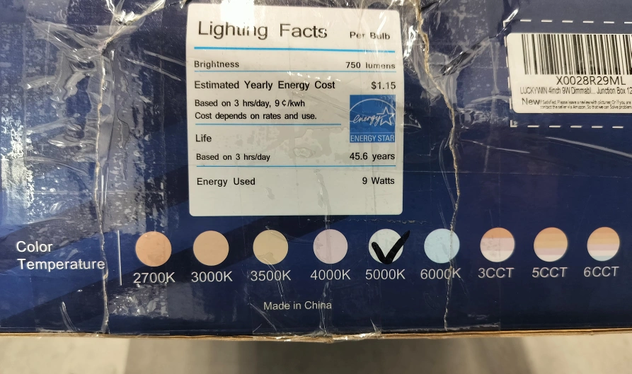 Selling a 12-pack of Slim Recessed LED Lights, each 4 inches in diameter. They output 750 lumens and use 9 watts. The colour temperature is adjustable, with options for 2700K, 3000K, 3500K, 4000K, 5000K, 6000K, 3CCT, and 5CCT. Dimmable. The box is included