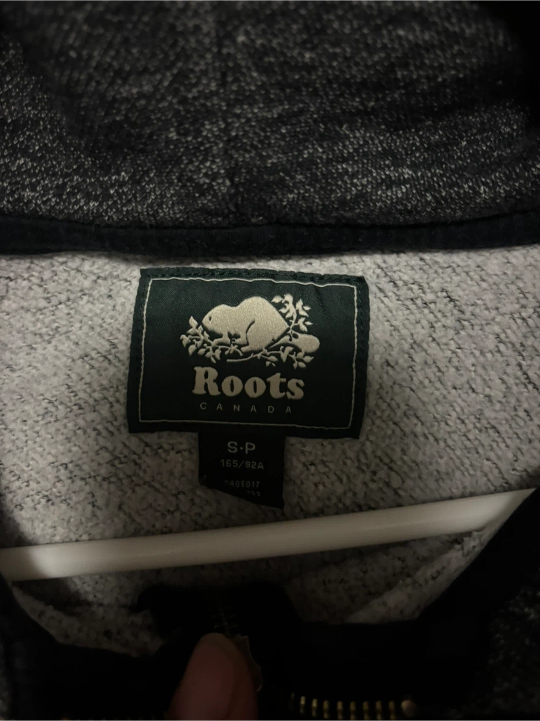 Selling a Roots zip-up hoodie in size small! It's a comfy and casual piece, perfect for layering or wearing on its own. The hoodie features the classic Roots logo and a full zipper. It's in great condition and ready for a new home
