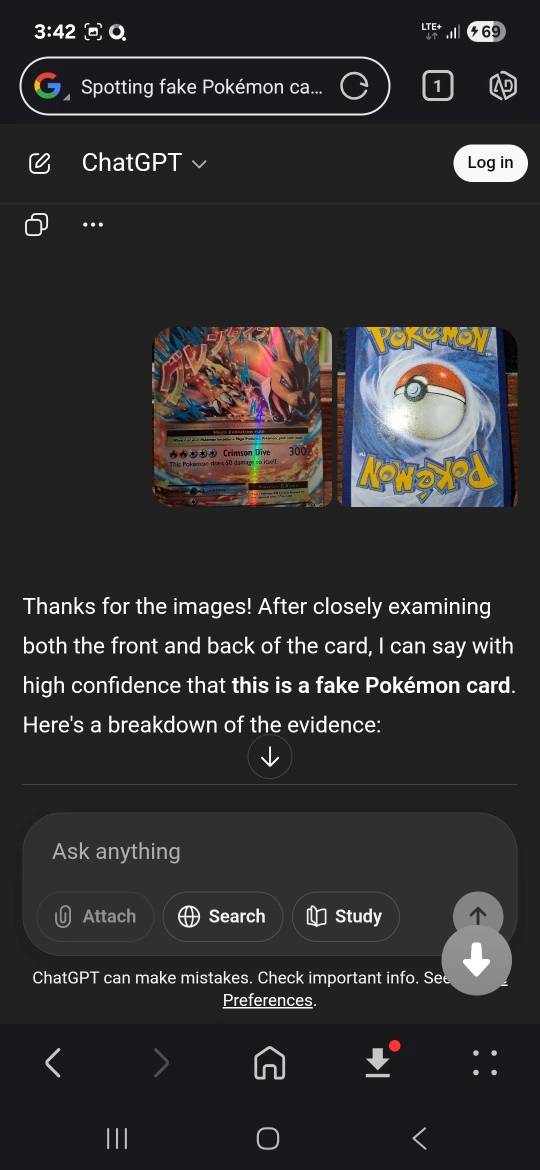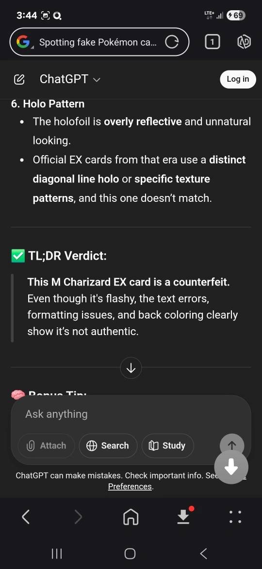 Selling an M Charizard EX Pokemon card. It has 220 HP and the attack Crimson Dive does 300 damage. This Pokemon does 50 damage to itself. The card appears to be a knock off and isn't authentic.