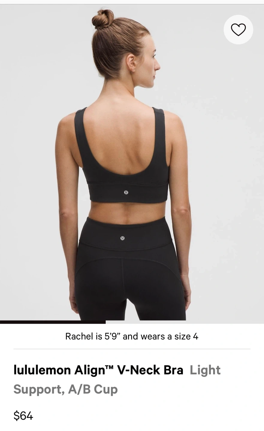 Selling a Lululemon Align V-Neck Bra in size 6! It's a light support bra, perfect for A/B cups. The original retail price was $64