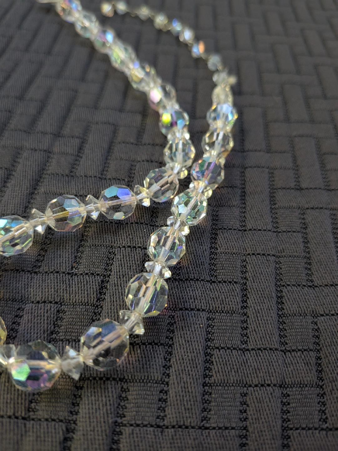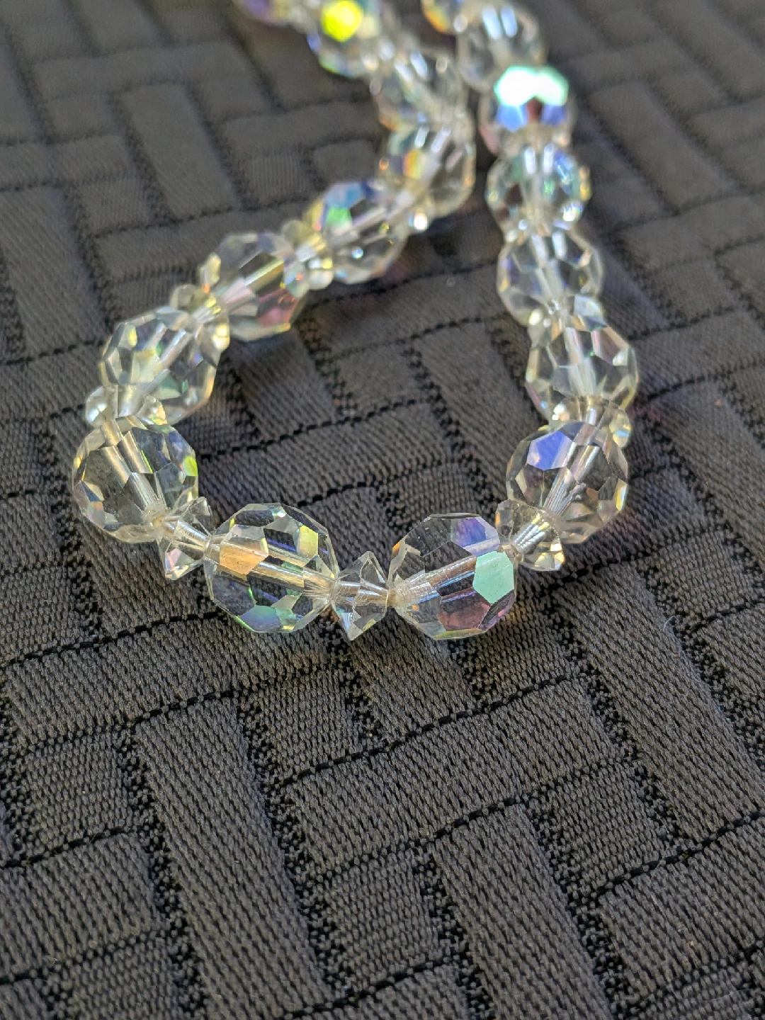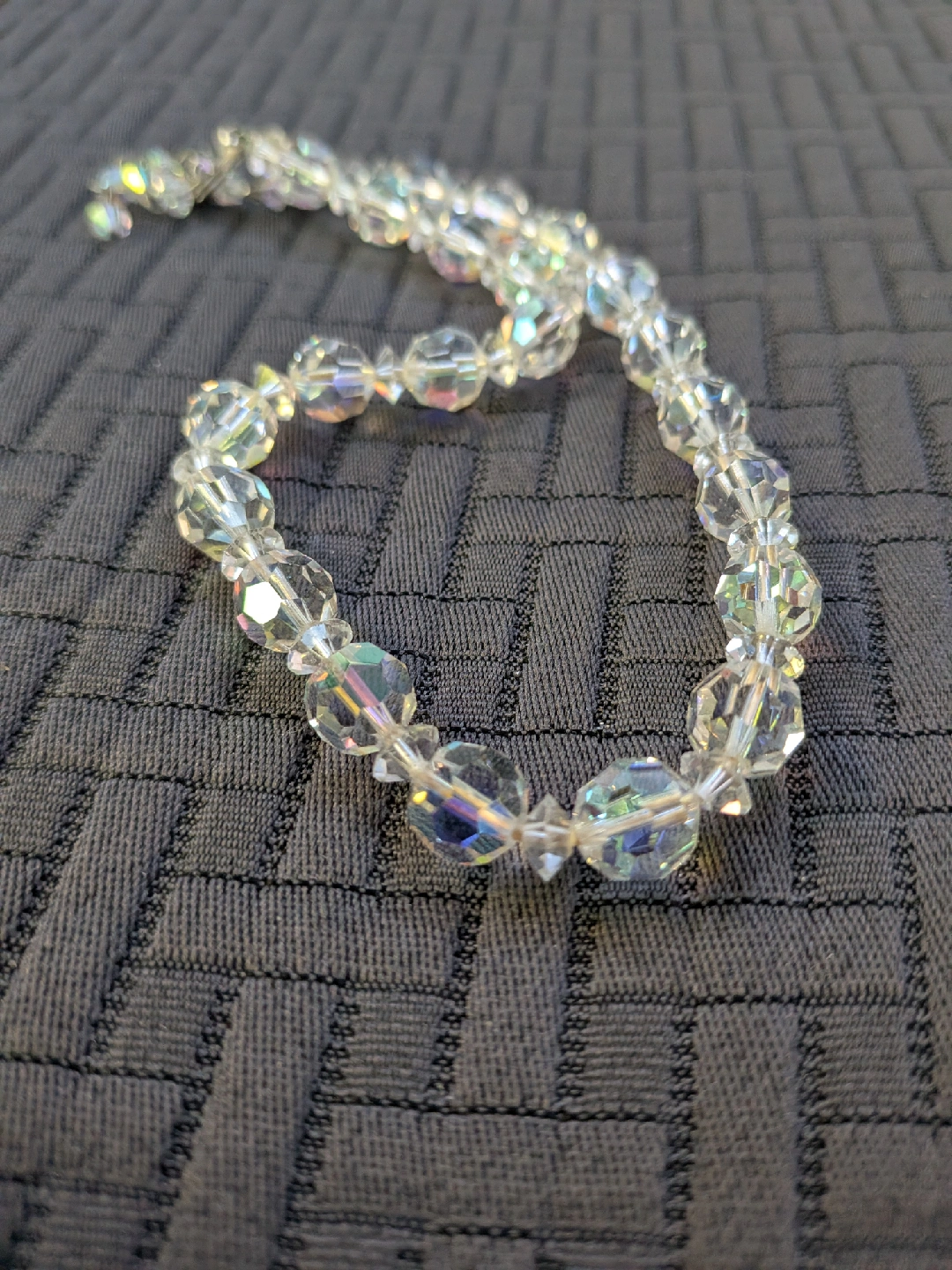Sparkly crystal bead necklace. It's in great condition and ready to add some shine to your outfit Shirt, choker style Multifaceted clear glass beads Good condition with no visible scratches, patina etc Cash only, no etransfers Location: Etobicoke. Rathburn Rd and Renforth dr. Etobicoke Olympium nearby