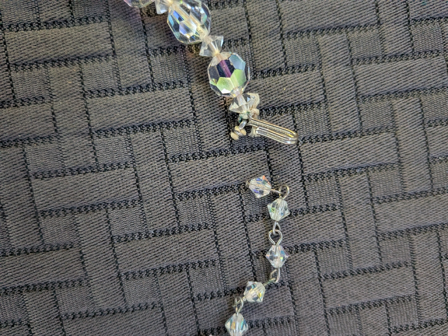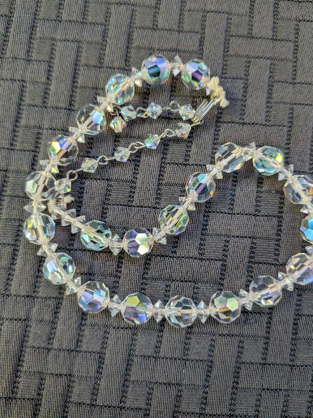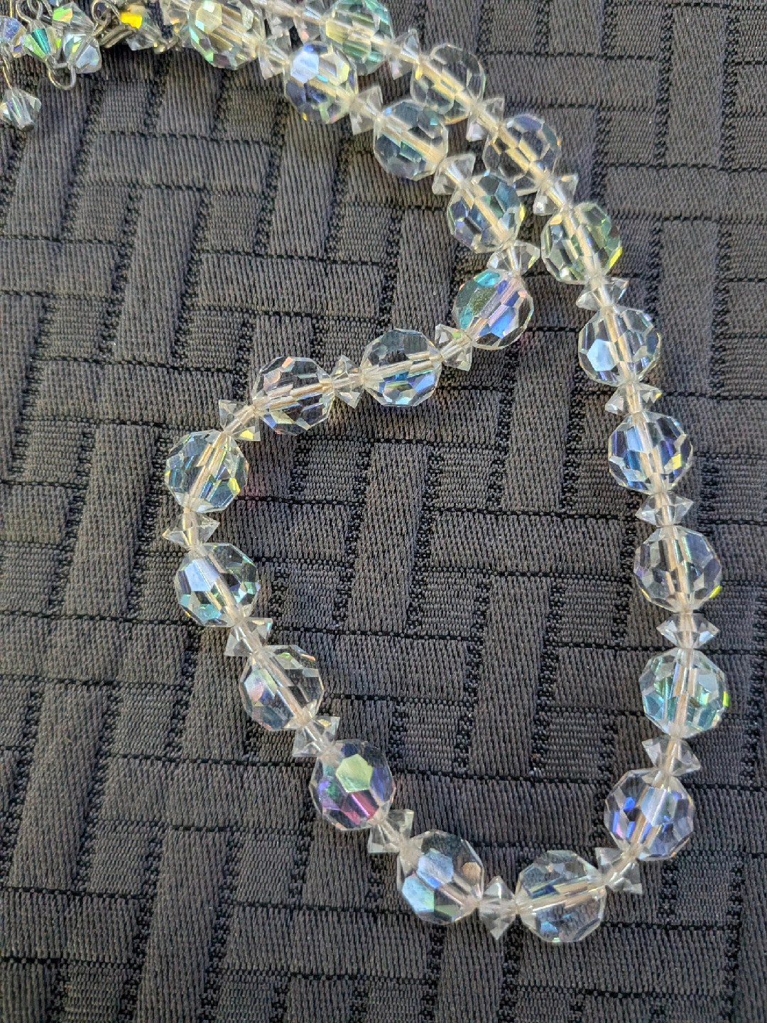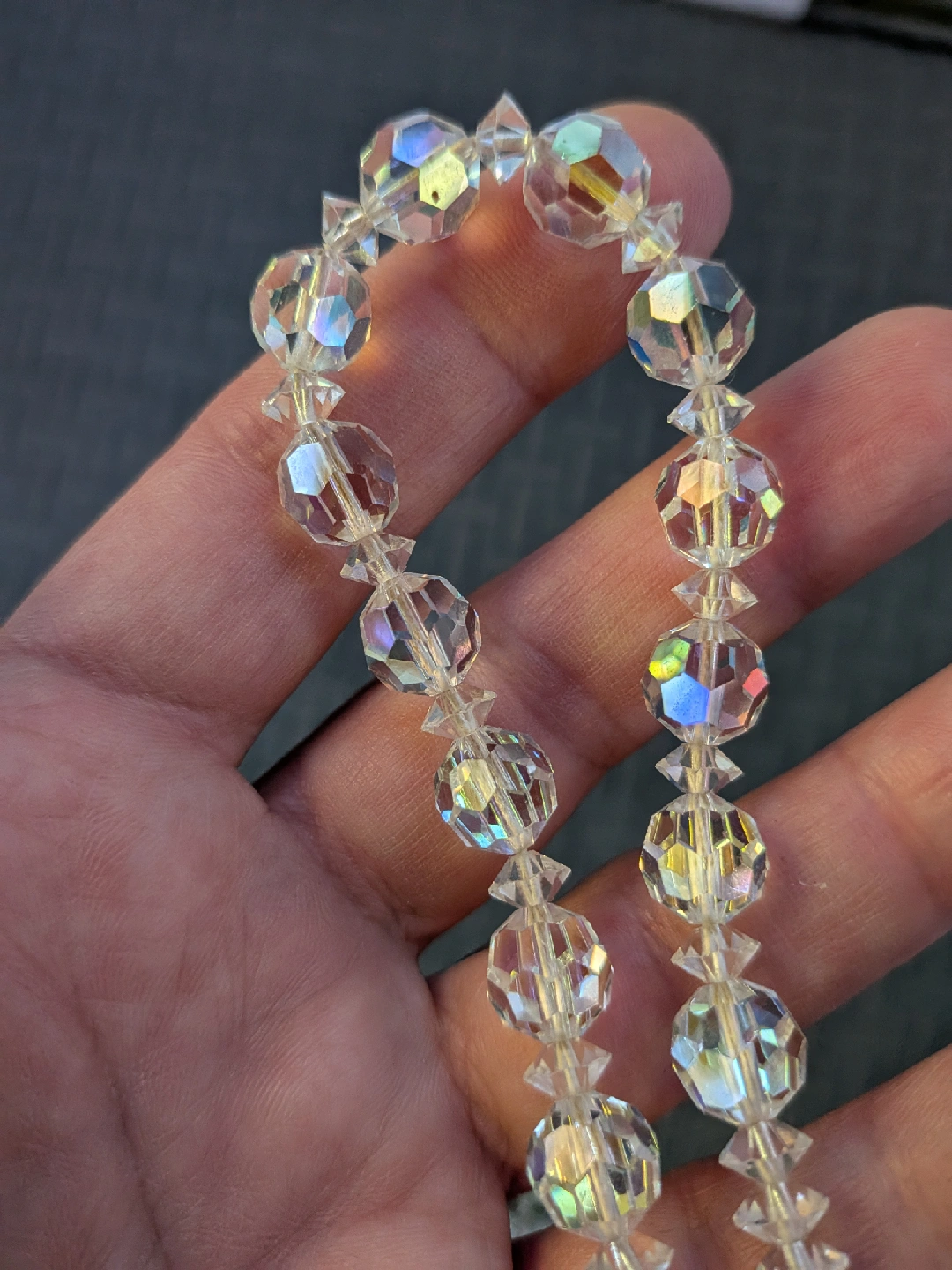 Sparkly crystal bead necklace. It's in great condition and ready to add some shine to your outfit Shirt, choker style Multifaceted clear glass beads Good condition with no visible scratches, patina etc Cash only, no etransfers Location: Etobicoke. Rathburn Rd and Renforth dr. Etobicoke Olympium nearby