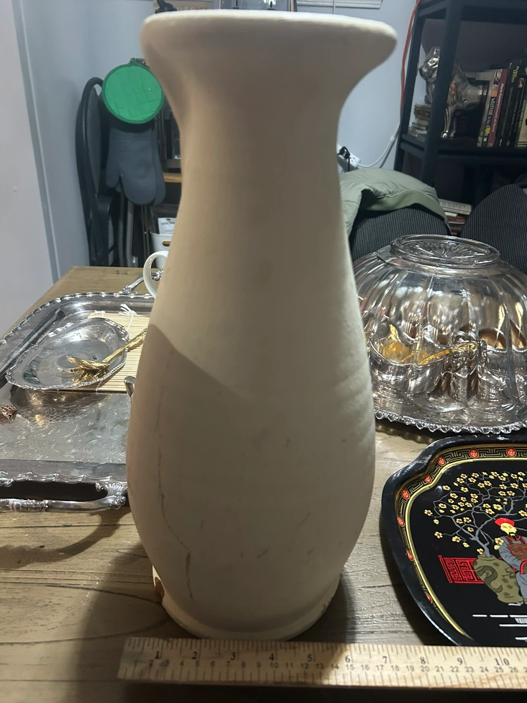Selling a cream-colored ceramic vase. It stands approximately 16 inches tall. It's a lovely piece for any room!
