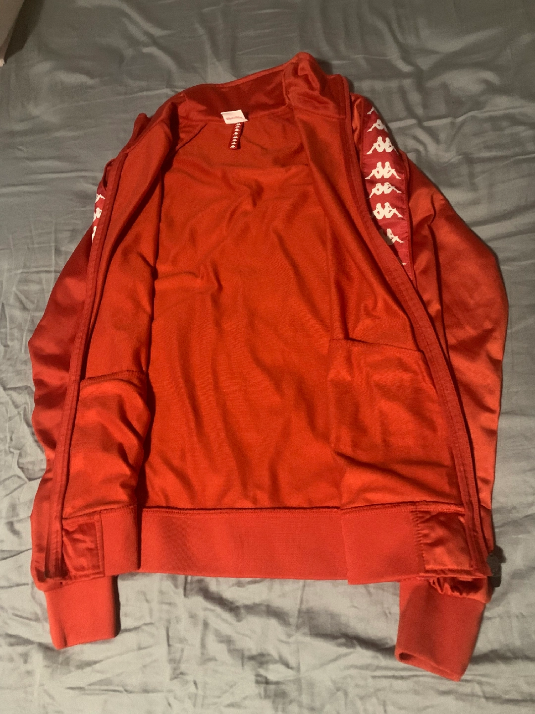 Selling a red Kappa track jacket! It's in great shape and features the classic Kappa logo down the sleeves. Perfect for adding a sporty touch to your wardrobe 14 to 16 years girls use like new
