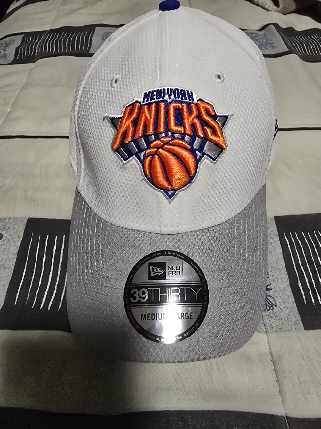 Selling a New Era 39THIRTY hat featuring the New York Knicks logo! It's a size medium-large never worn. brand new.. Perfect for showing off your team pride. white grey color. pick up only at Skyview ranch dr ne. cash only.