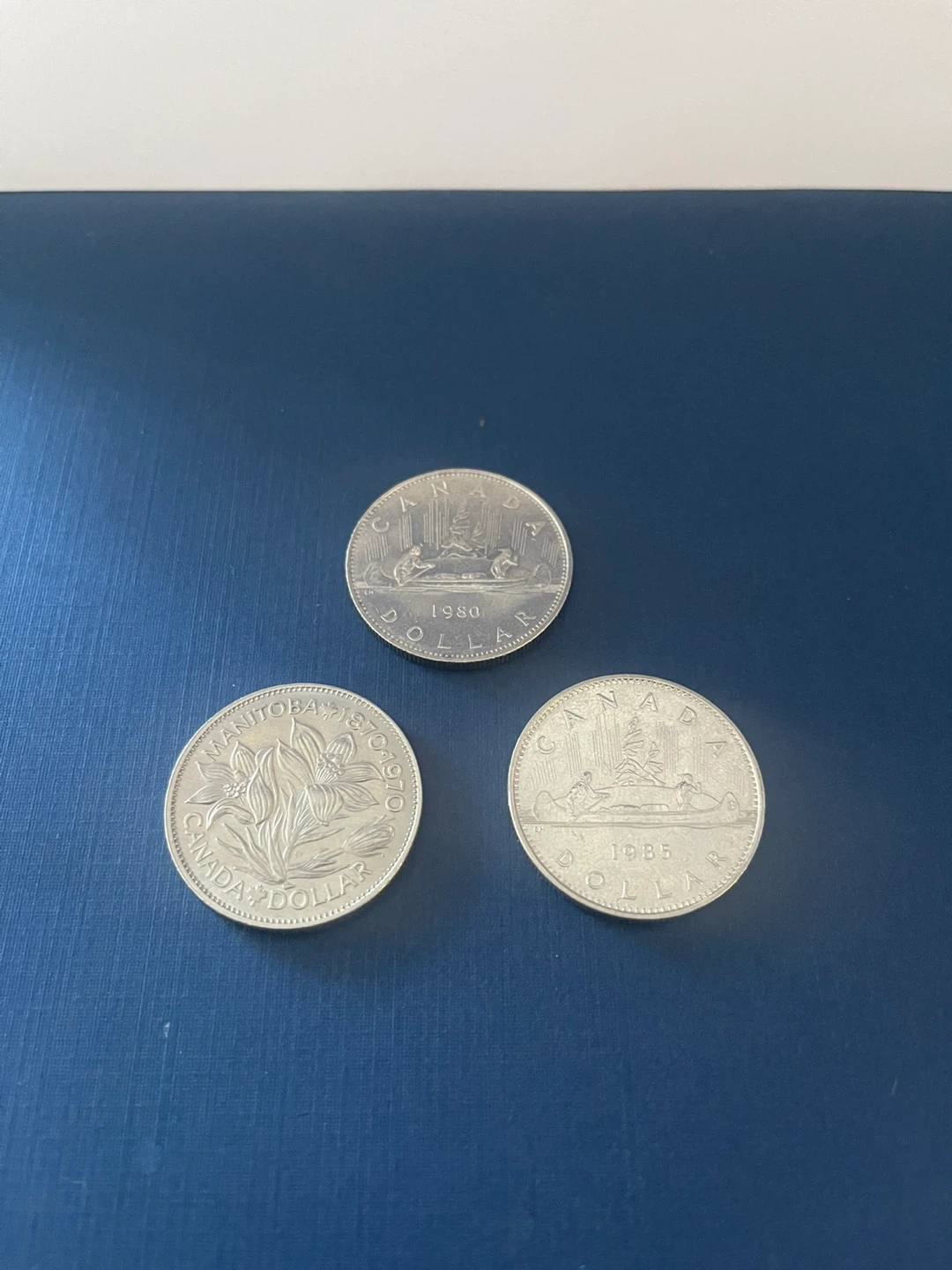 Collection downsizing! Three nickel dollars from 1970 - Manitoba, 1980, 1985. All in good condition, the price is for all 3!