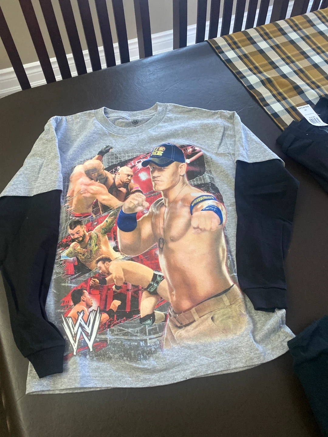 Selling a WWE John Cena long sleeve shirt. It's a size small and made of 50% cotton and 50% polyester. Great for any wrestling fan!