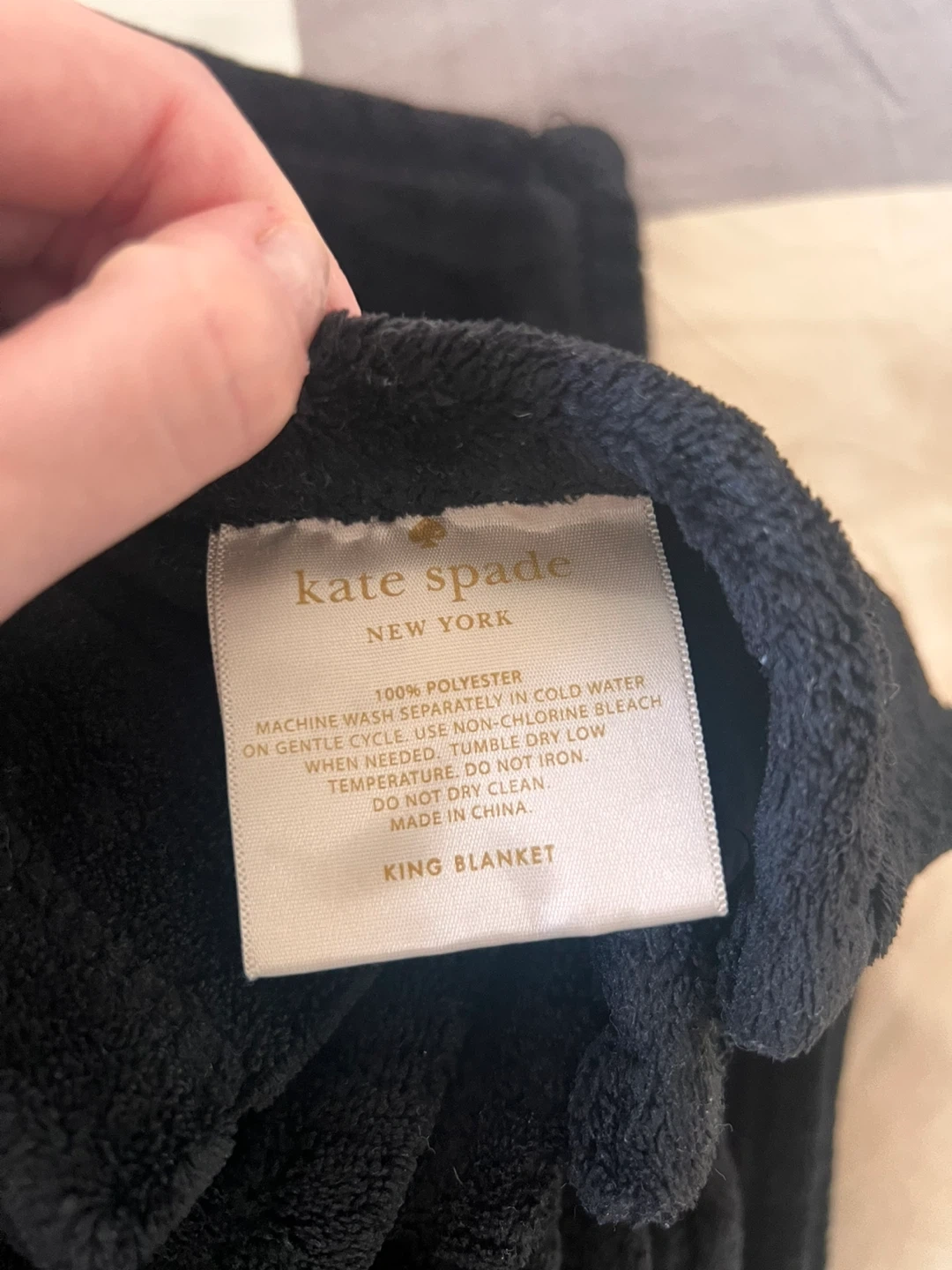 Cozy up with this Kate Spade New York King Blanket in classic black! It's made of 100% polyester and is super soft. Perfect for adding a touch of luxury to your bedroom. Machine wash separately in cold water on gentle cycle, use non-chlorine bleach when needed, tumble dry low temperature, do not iron, do not dry clean Cash only thanks