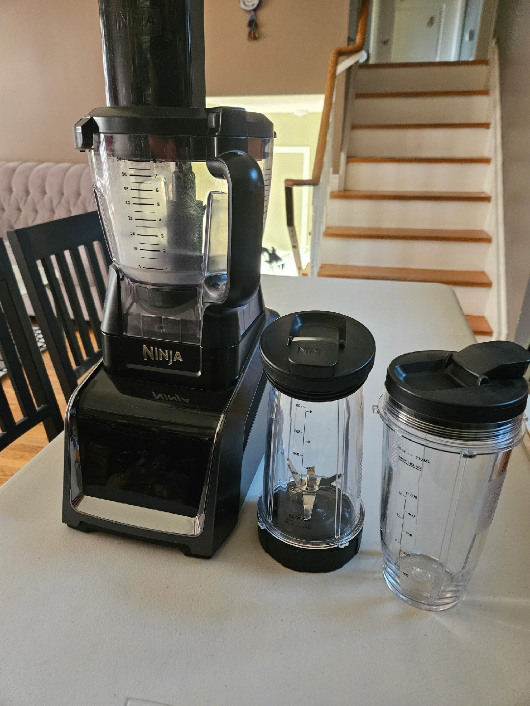 Selling a Ninja kitchen system blender. It's in great condition and ready to help you make smoothies, sauces, and more! It comes with the main blender, a blending cup, and a food processing bowl.