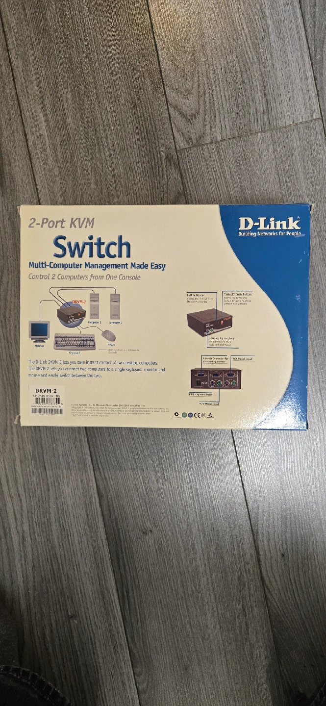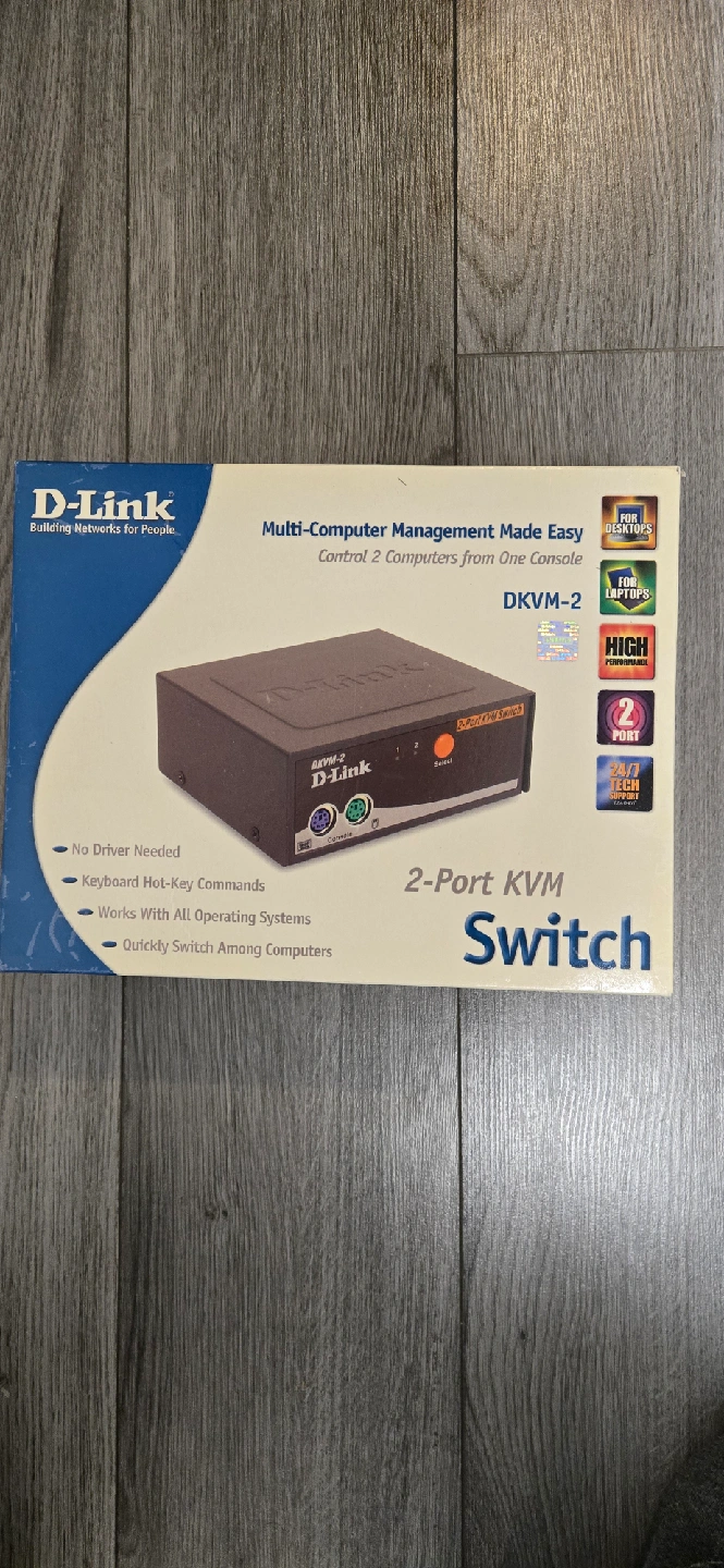 Selling a D-Link DKVM-2 2-Port KVM Switch. It allows you to have instant control of two desktop computers. It works with all operating systems and quickly switches among computers. No driver is needed and it supports keyboard hot-key commands