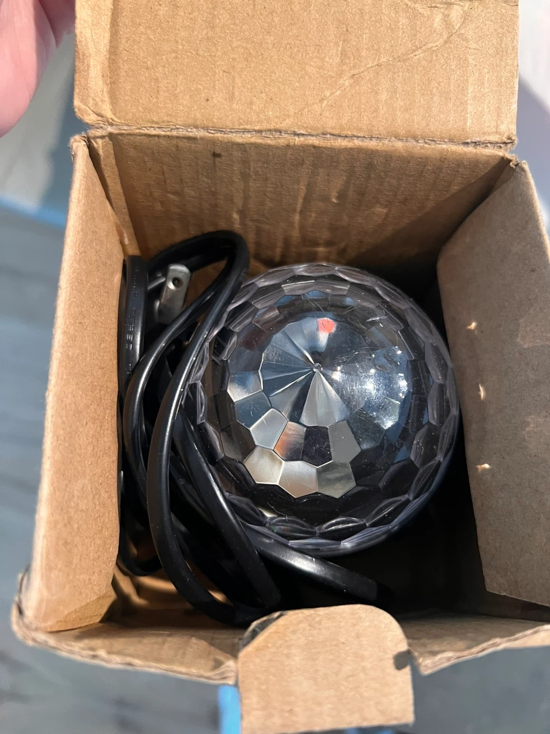 Selling a fun LED disco party light! It's in great condition and comes in its original box. Perfect for adding some sparkle to any party or event. The box includes the light itself, no remote control.