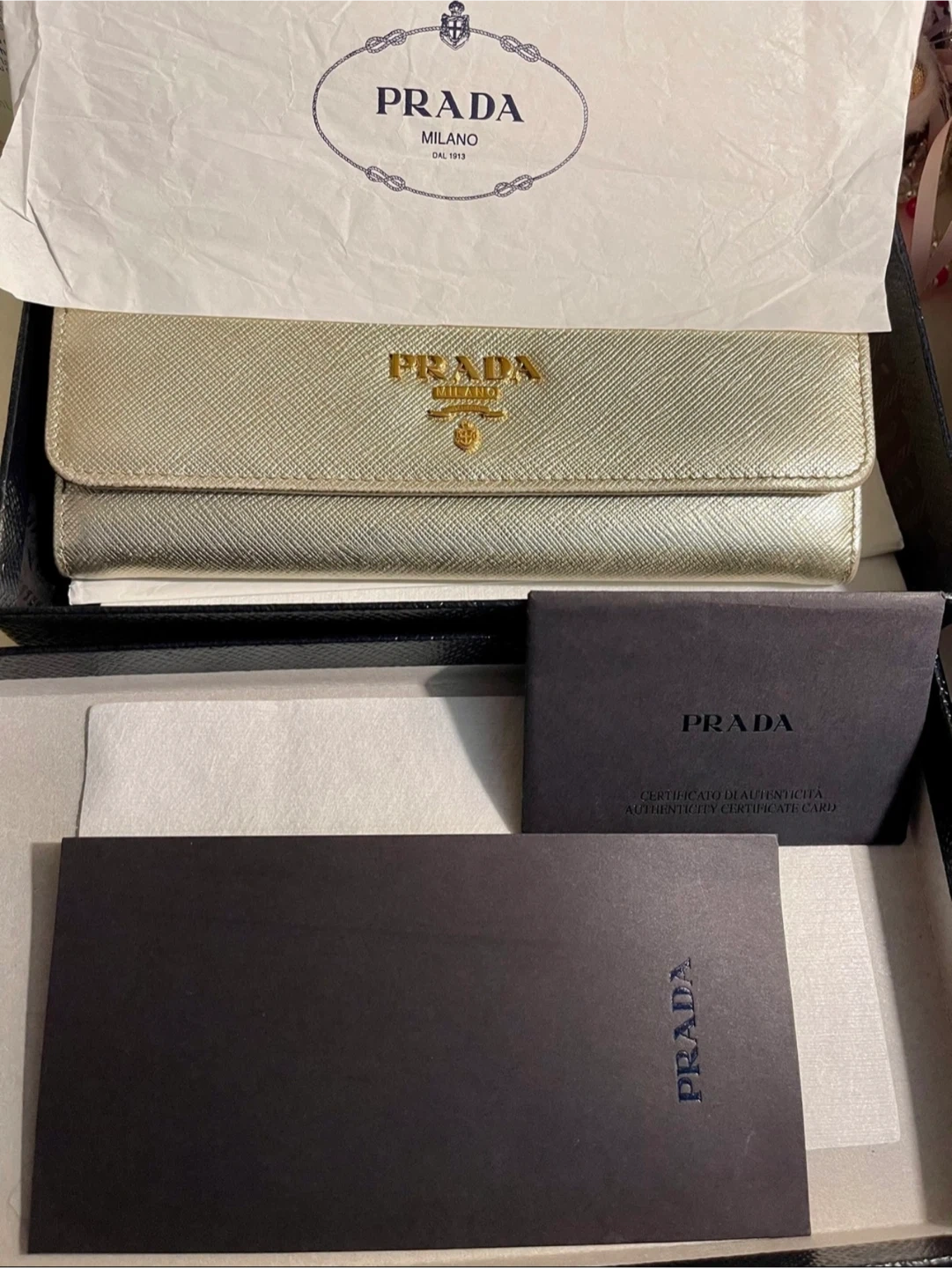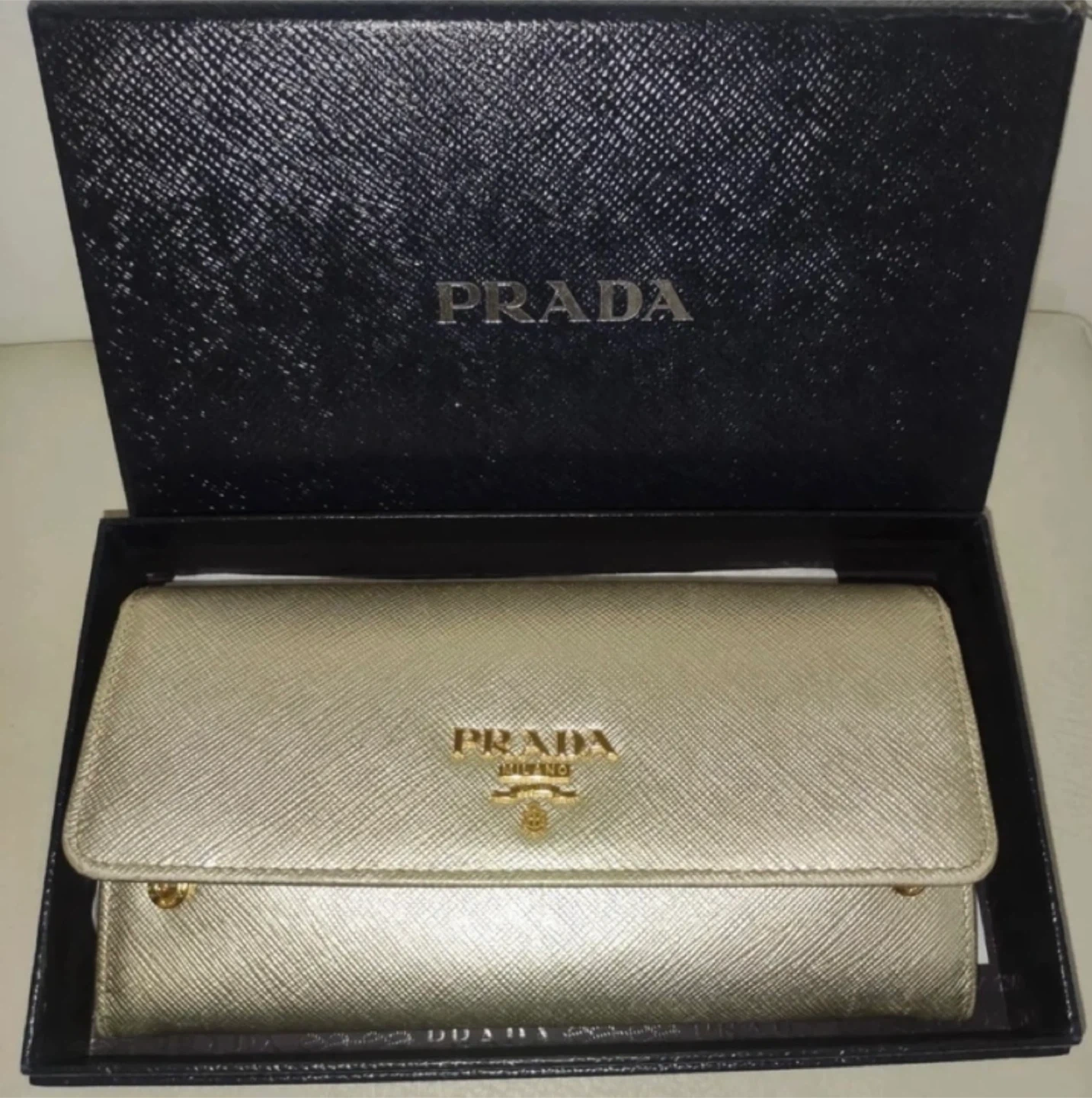 Authentic Prada Gold Wallet with Box