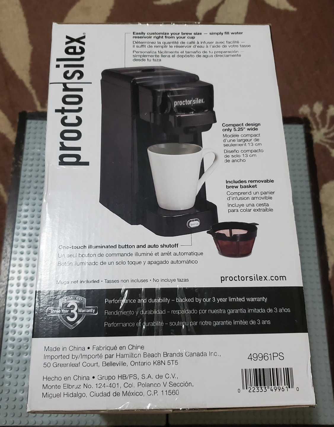 Available! Please read before messaging. Hi, I'm selling a Proctor Silex Single Serve Coffee Maker. Brand new in box. $20 Meetups at or around eaton centre or parliament st and dundas st e.