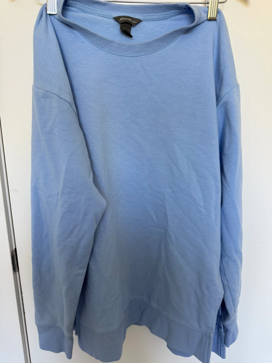 A comfy light blue crewneck sweatshirt from Eddie Bauer! It's in great condition and ready for a new home