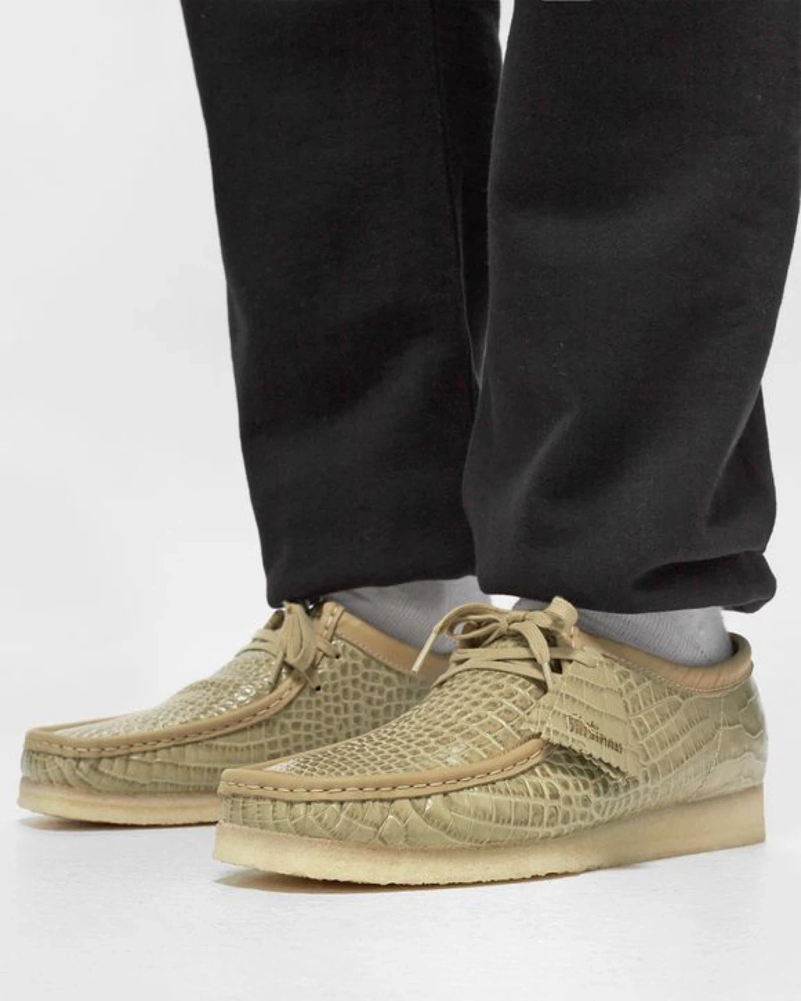 Check out these stylish Clarks Originals Wallabee Maple Crocadile shoes! They feature a unique beige crocodile pattern that's sure to turn heads. Perfect for adding a touch of flair to your wardrobe! Open to negotiations No low balling