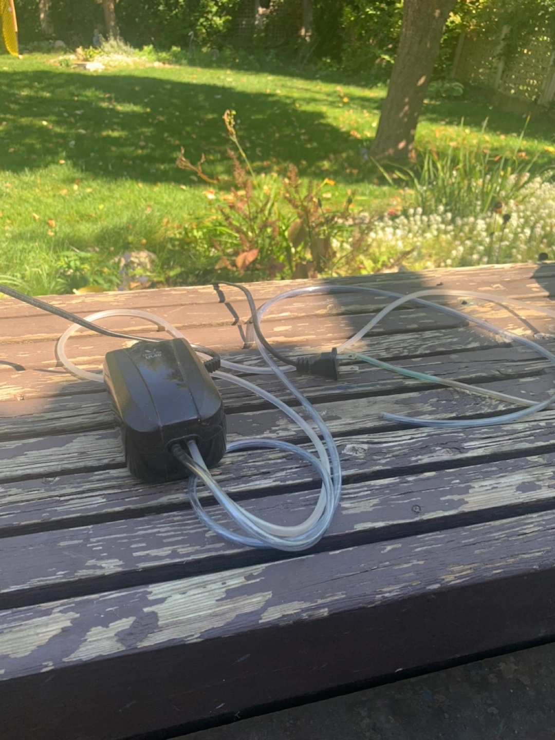 Selling a used aquarium air pump. It's in good working condition and comes with the air hose. Perfect for keeping your fish happy and healthy!