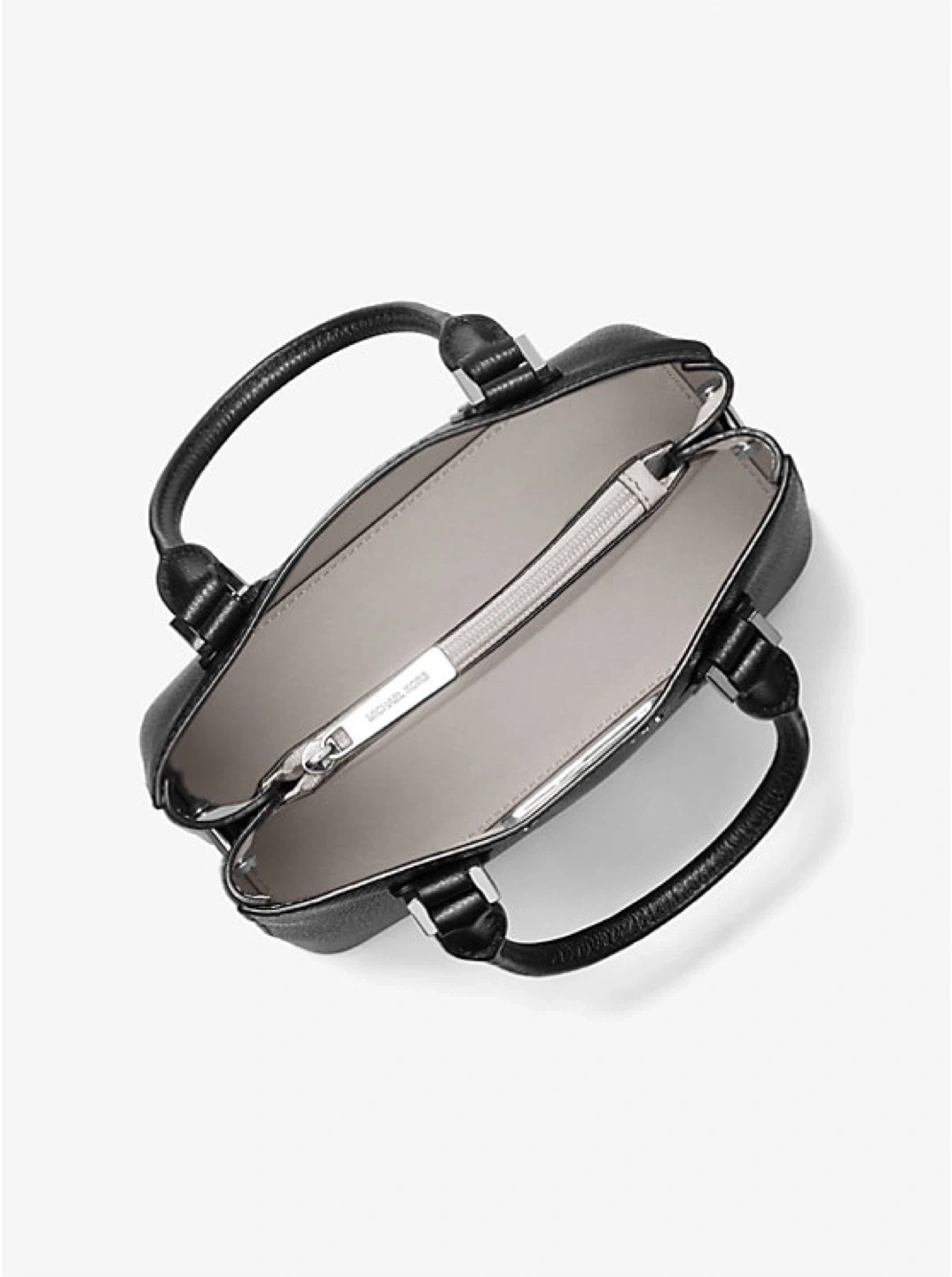 A stylish Michael Kors satchel in black leather. This bag is in great condition and perfect for everyday use. It features a classic design with sturdy handles and a lock. The interior is spacious enough to carry all your essentials. A versatile addition to any wardrobe! Chic Michael Kors satchel in black. Features textured leather and lock detail. In pristine condition! Pickup Brampton or downtown Toronto