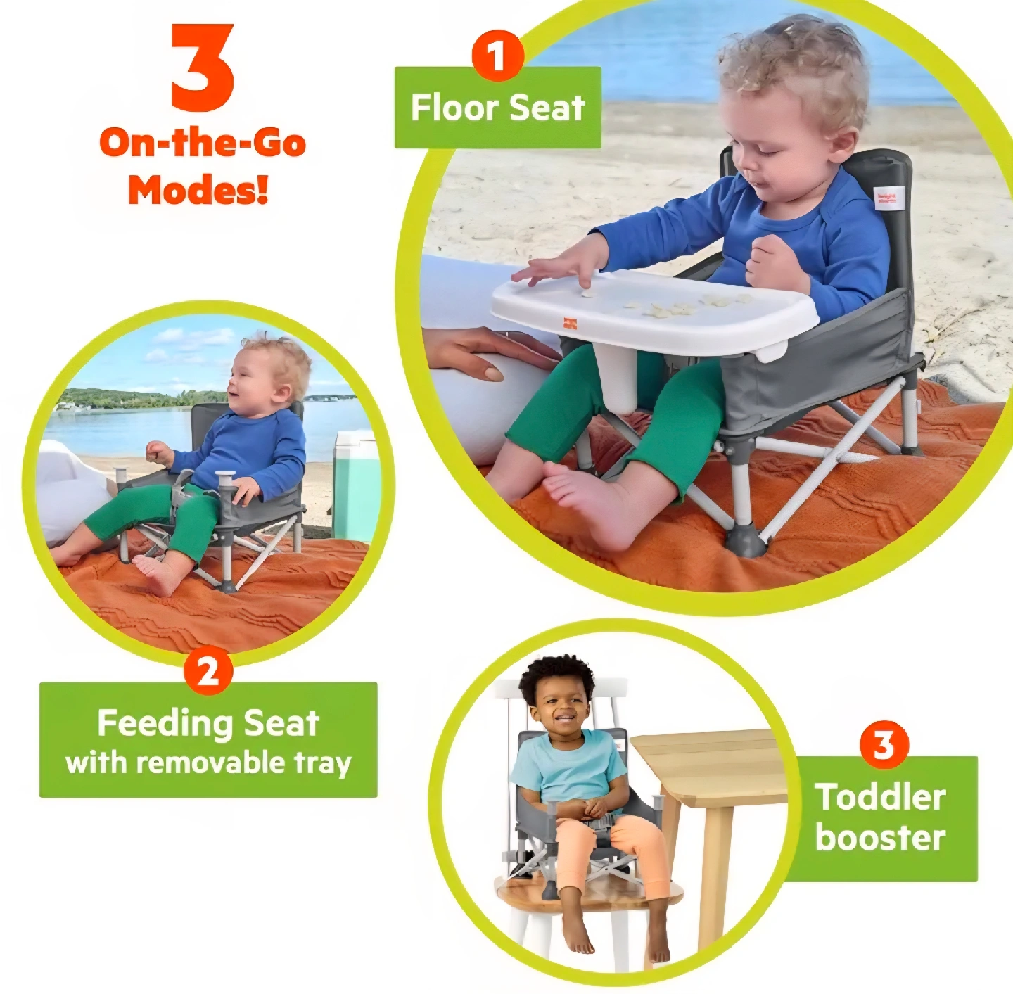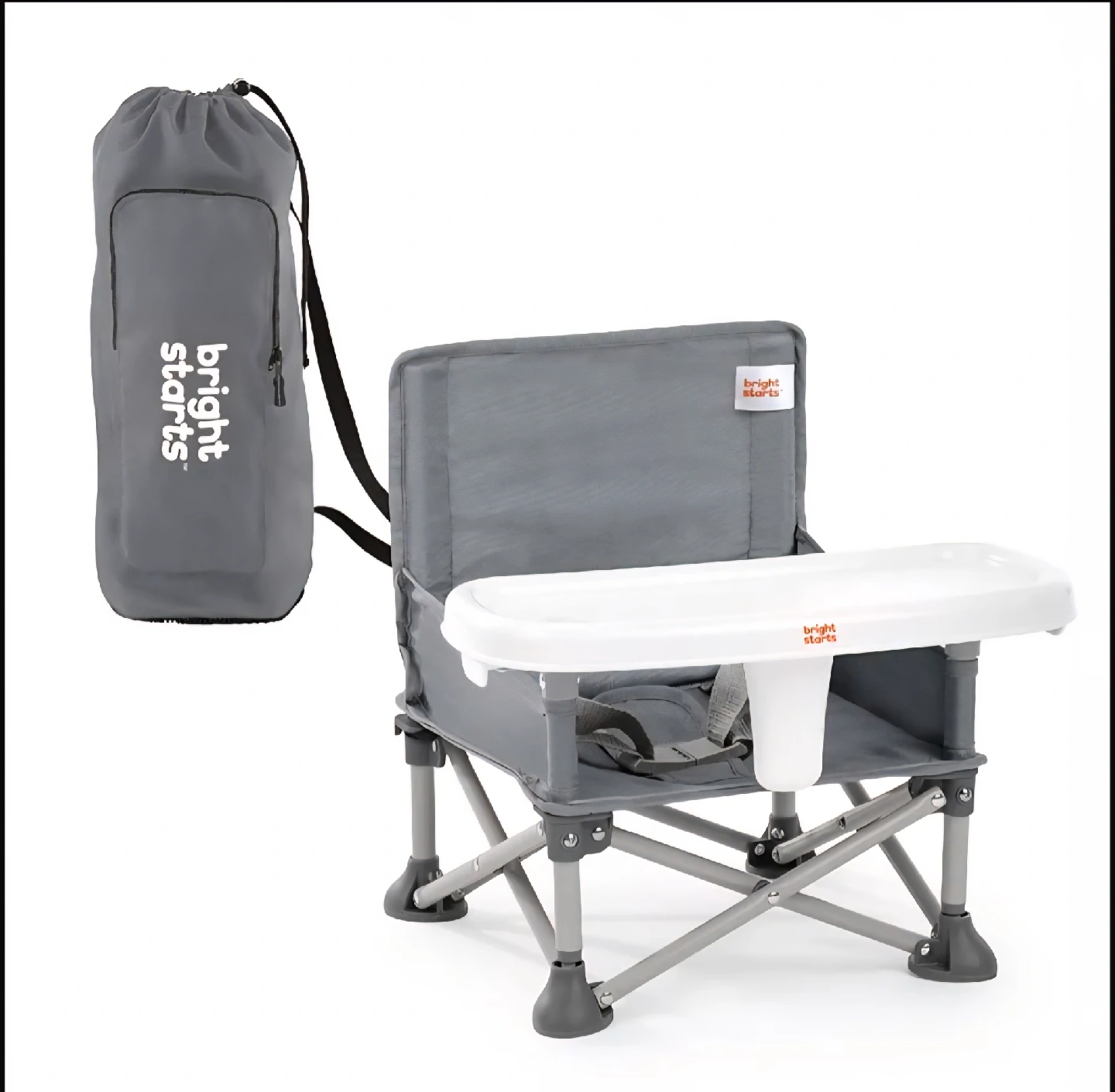 This Bright Starts 3-in-1 booster seat is perfect for mealtime, playtime, and travel! It features: - 3 on-the-go modes: floor seat, feeding seat with removable tray, and toddler booster - Compact folding for easy storage and transport - Handy storage pocket for keeping essentials close by - Folds compactly -Open, New Box