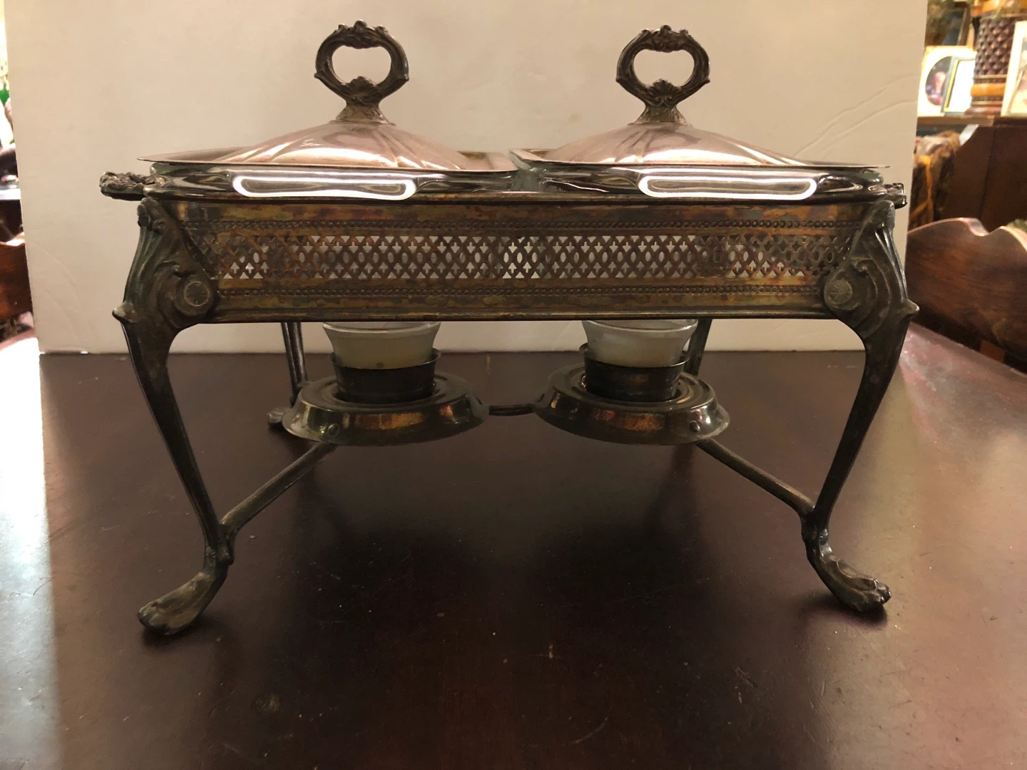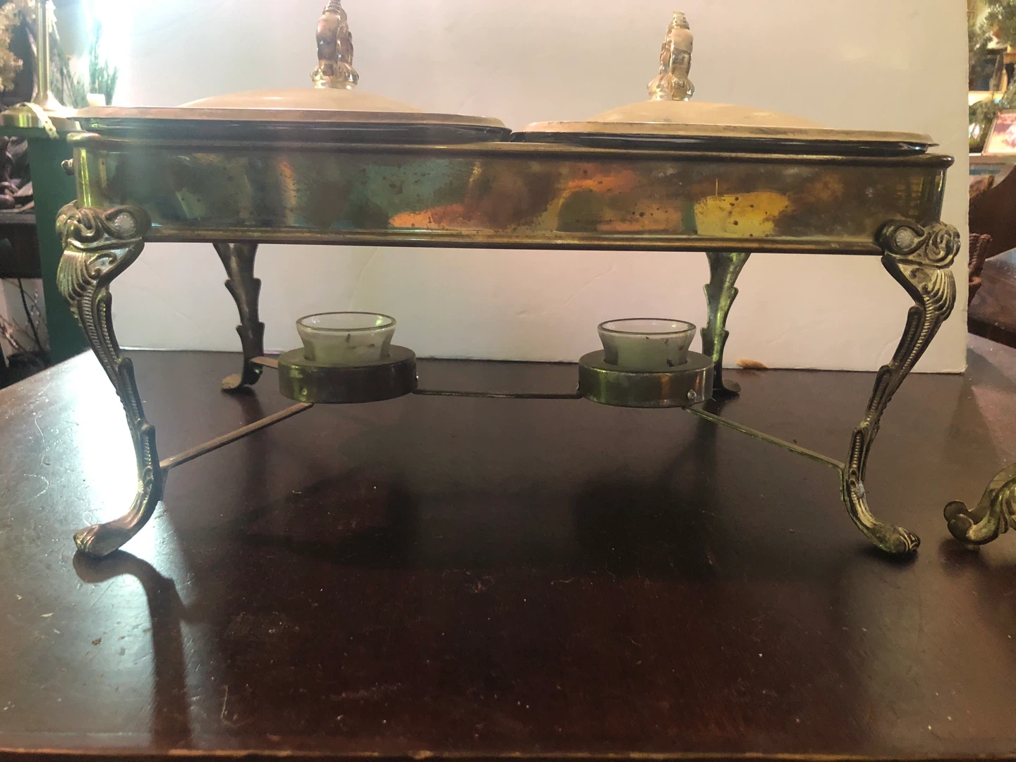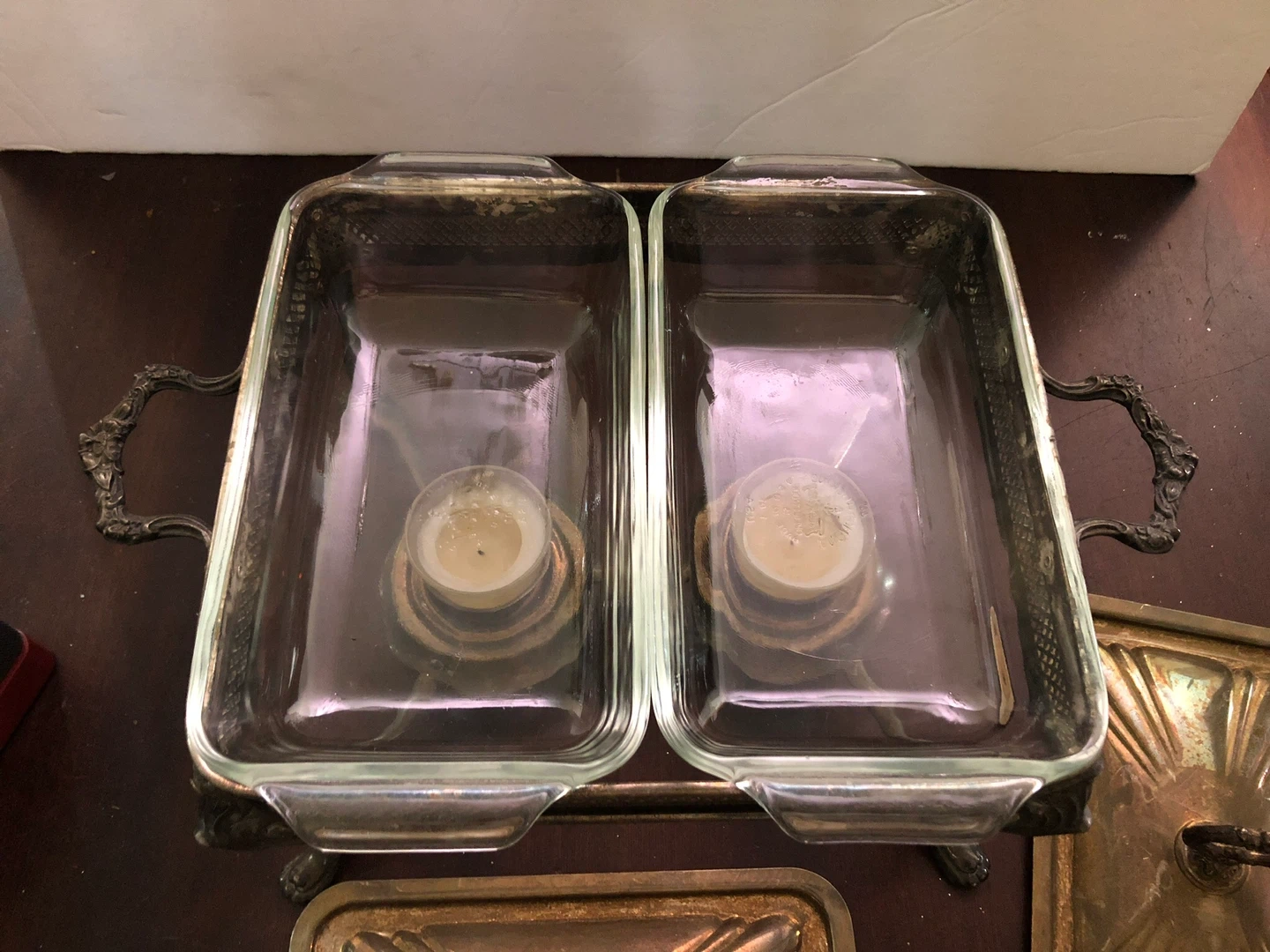 Vintage Double Silver Plated Buffet. Has two glass pans Two silver lids Two glass candle holders 15” wide 8” high 11.5” deep Good condition $80 Cash or e-transfer Coliseum Area / Elmwood Park Shipping extra
