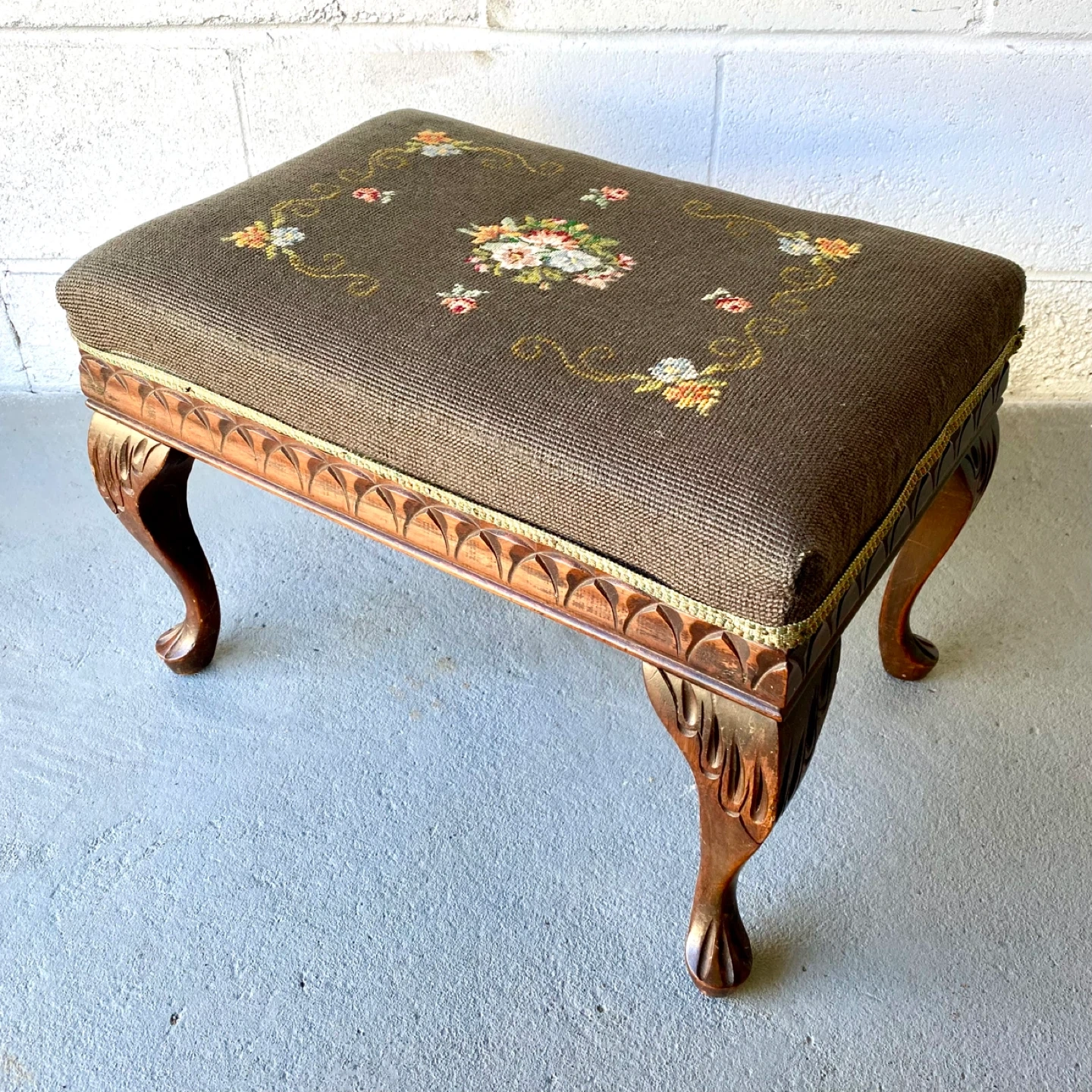 Antique petit point embroidered floral Queen Anne footstool with cabriole legs. ~19βw x 13βd x 13βh π₯$65 β Yes, it is available π Pick up near Bloor & Ossington π Downtown delivery extra