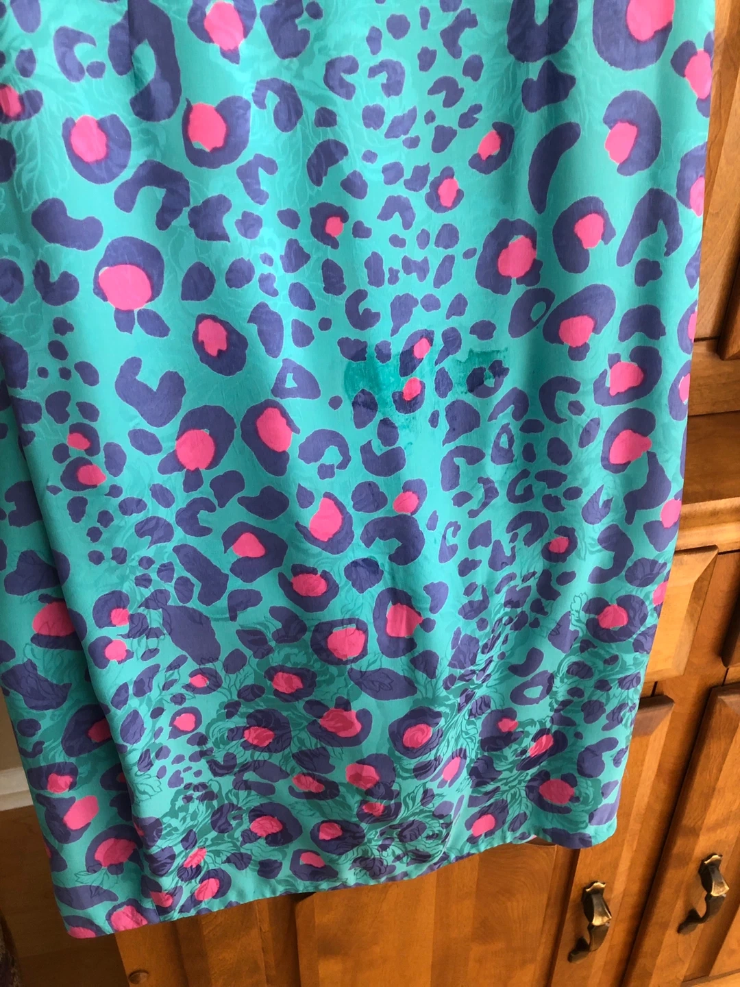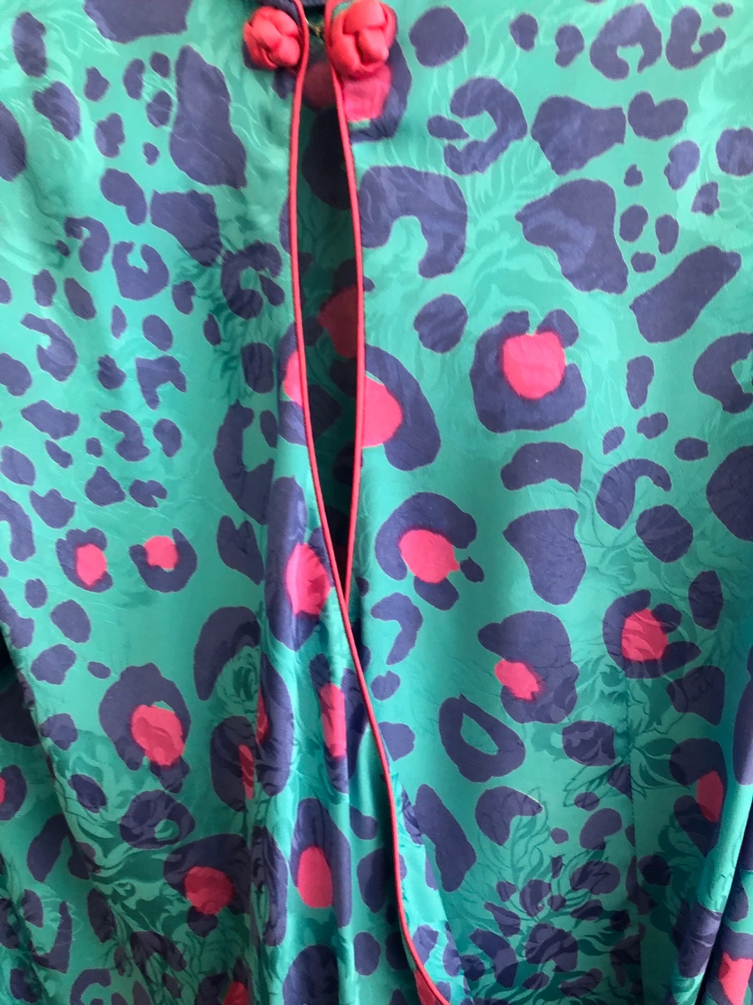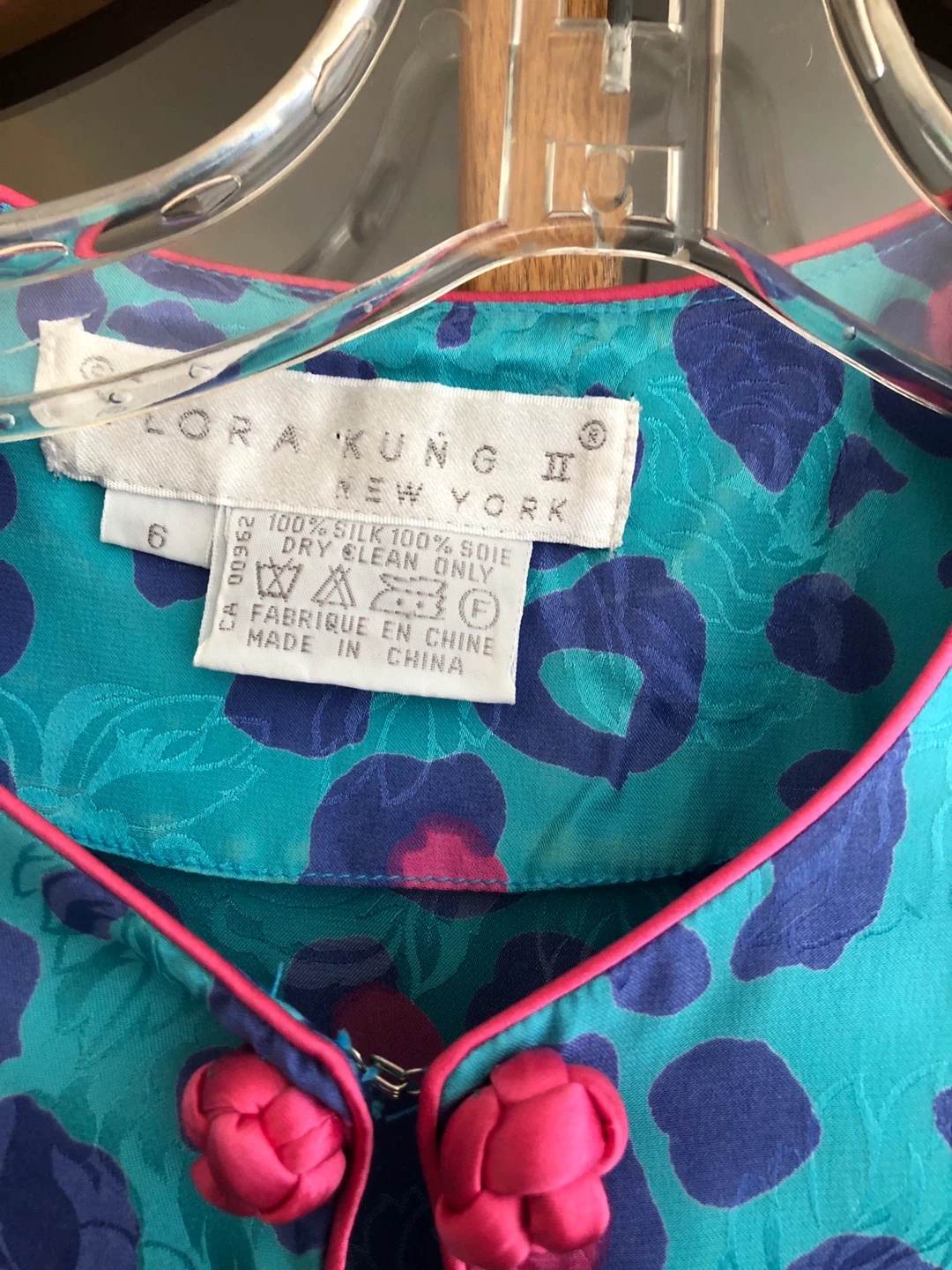 Vintage - Beautiful Flora Kung II dress in size 6! It's made of 100% silk with a fun and vibrant blue and pink leopard print pattern. Perfect for a night out or a special occasion