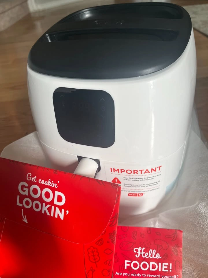 Compact Digital Air Fryer with Auto Shut-Off New in box Pickup in Barrhaven, Mountshannon and Daventry street intersection. 2.6-quart capacity, perfect for 1-2 people Compact design saves space, ideal for small kitchens, dorms, RVs Digital controls with 3 custom presets Temperature range: 200-400°F, timer up to 60 minutes Auto shut-off for safety, cool-touch handle Non-stick PTFE basket, easy to clean 1000-watt power for fast, even cooking Dimensions: 22.1D x 27.2W x 28.7H cm Feel free to message if you have any questions!
