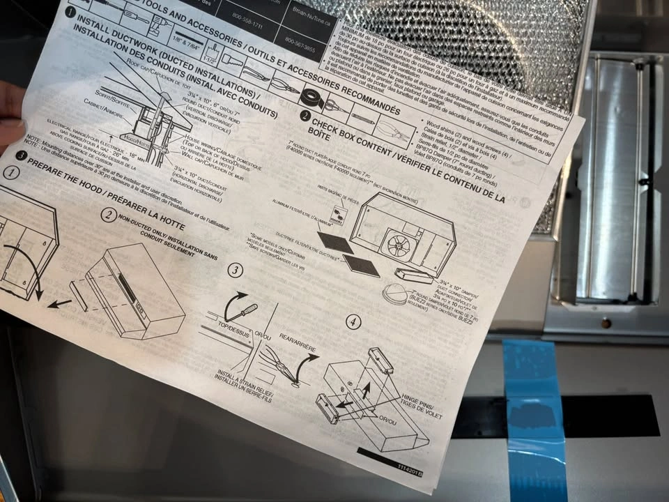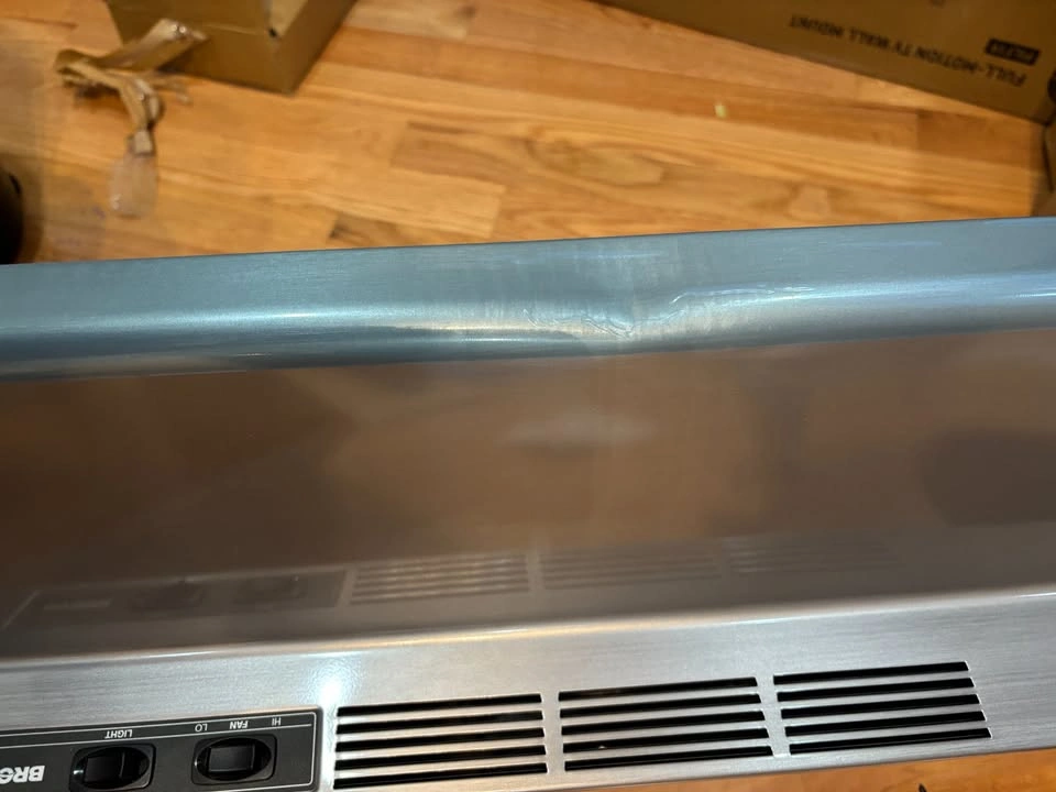 Powerful Stainless Steel Under-Cabinet Range Hood New but some cosmetic damage: two dents on the front (see pictures) Pickup in Barrhaven, Mountshannon and Daventry street intersection. 30” width, under-cabinet mount, stainless steel finish 230 CFM MAX blower, HVI certified performance 2-speed rocker control for ventilation adjustment Quiet operation at 3.5 sones (normal conversation level) Removable aluminum filter for easy cleaning LED lighting compatible (bulbs not included) Convertible venting (horizontal/vertical with kit) 120V, 240W, made in the USA Minimum 18” height required above cooktop ADA compliant, durable steel construction