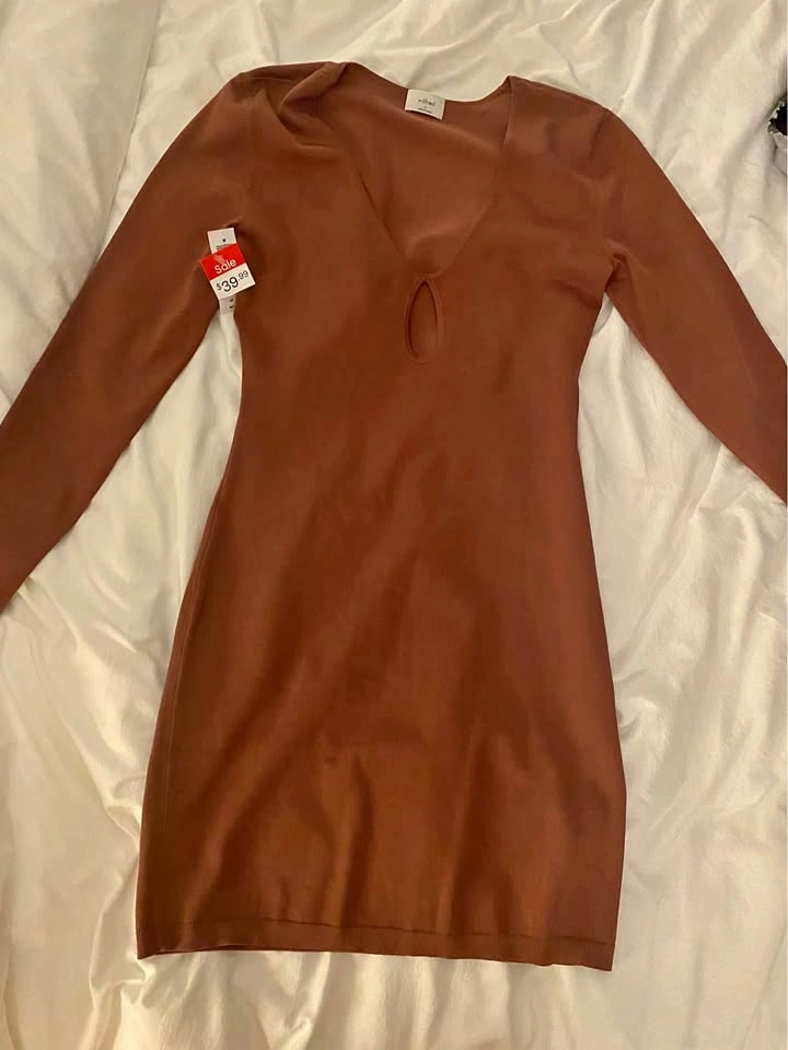 Brand new. My husband bought this for me at the warehouse sale and it is a bit small for me. Beautiful dress with keyhole. Pick up heritage mtn.