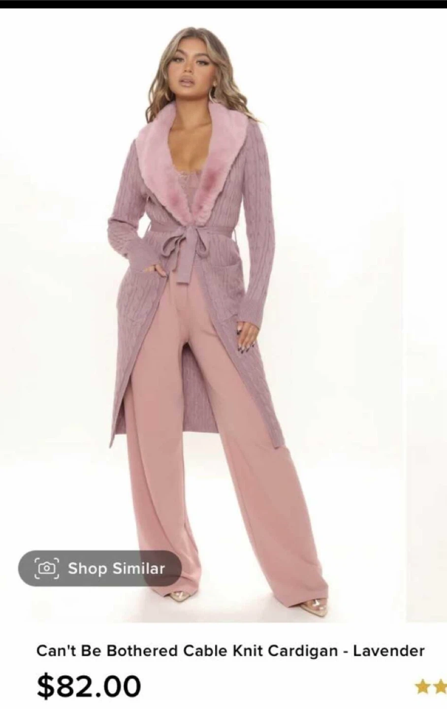 NEW ! Cozy lavender cable knit cardigan from Fashion Nova! It features a soft, faux fur collar and a tie waist. Perfect for adding a touch of warmth and style to your outfit. Originally bought for $82