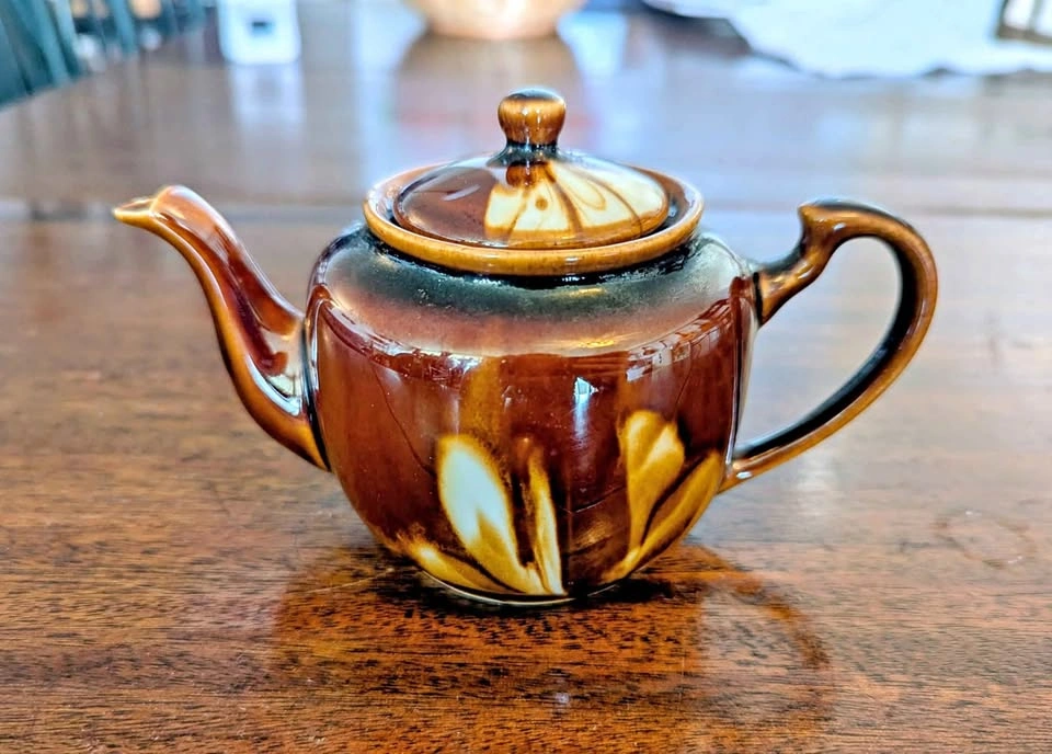 Vintage Teapot made in China around 1970s. Has only been used once and is in excellent condition for its age! Only one small chip of the spout shown in pic #5 and no crack! Approx 8cms tall and 16cms wide.