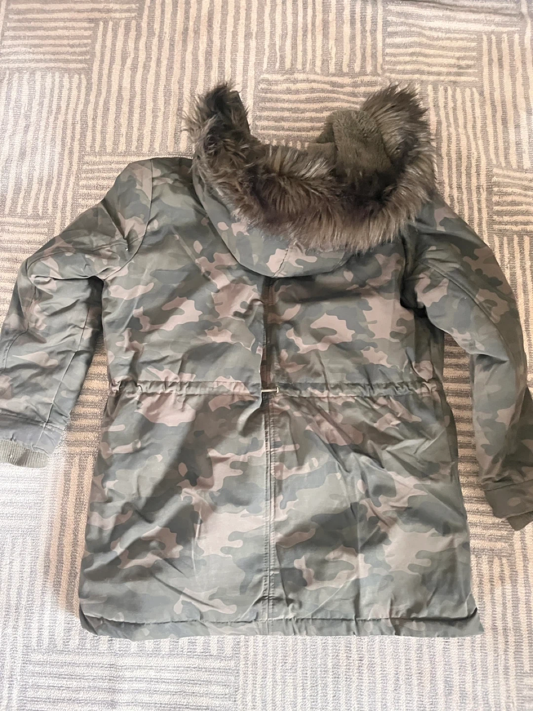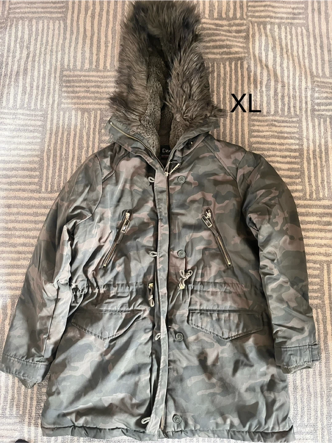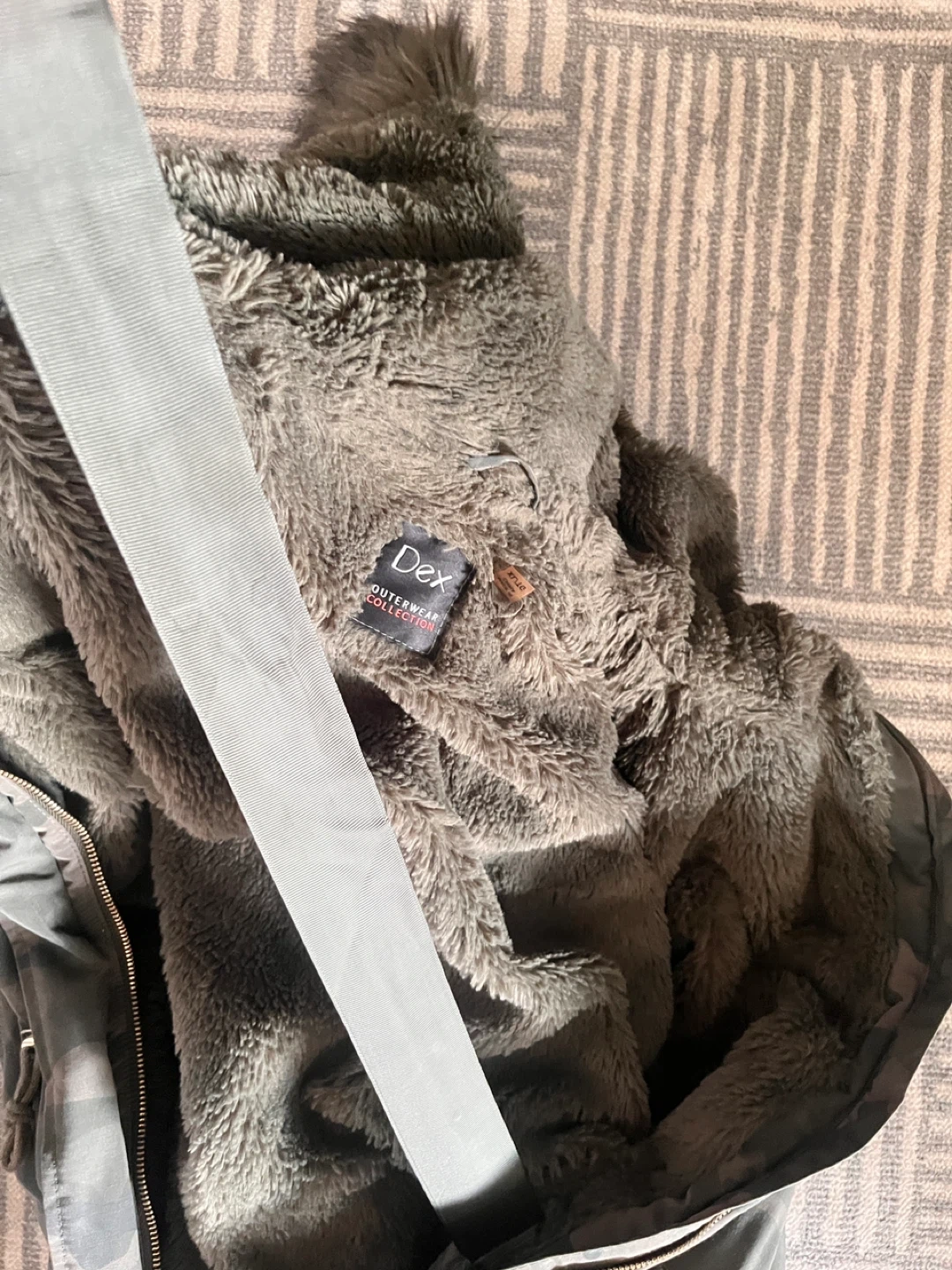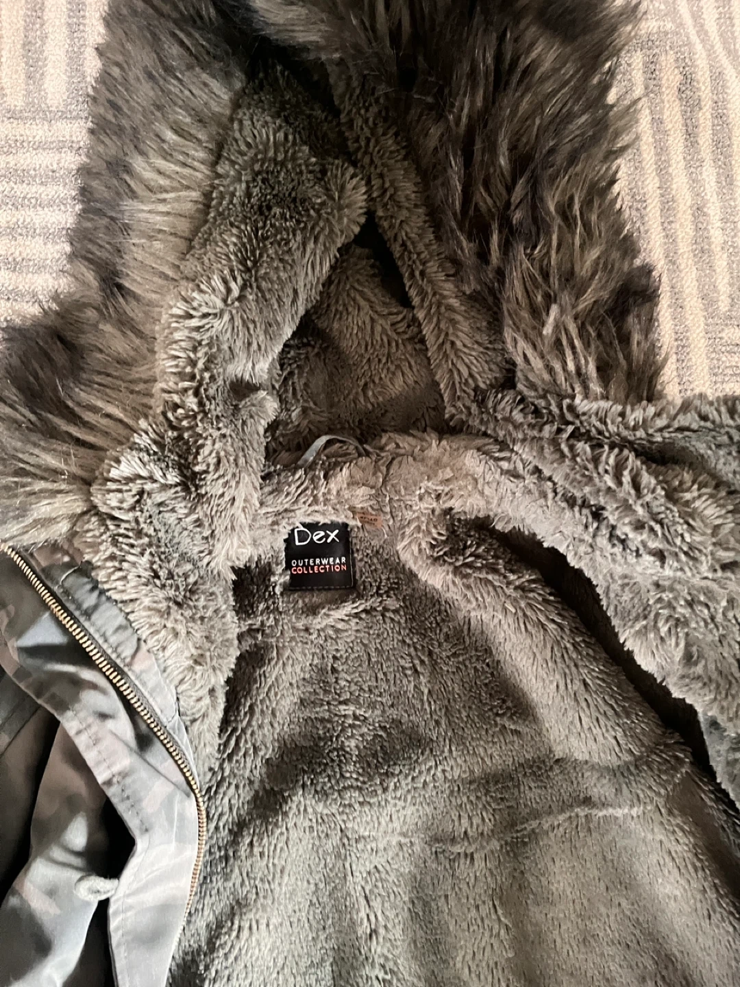 Selling a Dex Outerwear Collection parka in size XL! It features a stylish camouflage pattern and a faux fur-trimmed hood. The jacket is lined with a soft, grey faux fur for extra warmth and comfort. Perfect for staying cozy during the colder months!