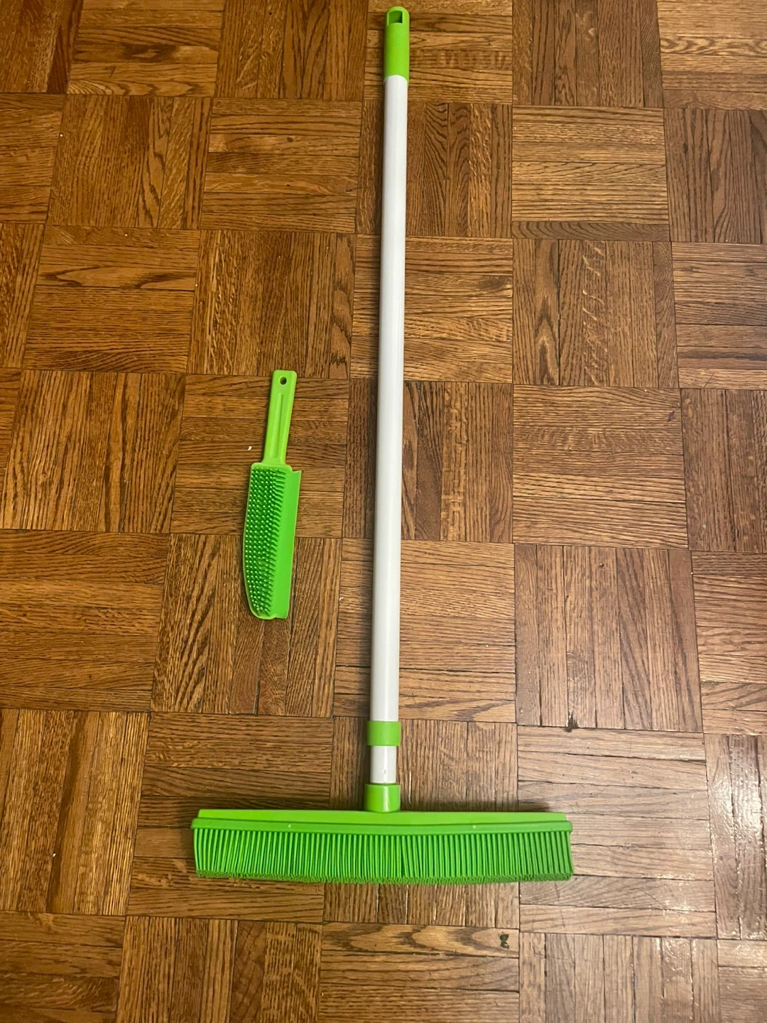 This green silicone broom is perfect for cleaning up around the house! It also includes a squeegee and a brush attachment for getting into those hard to reach spots. It's in great condition and ready for a new home