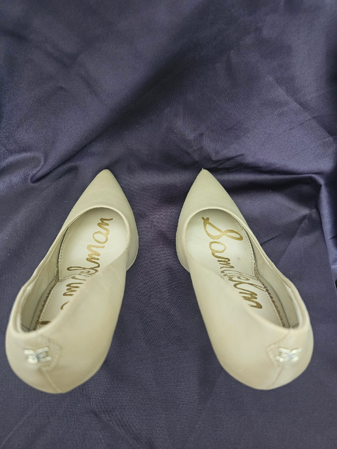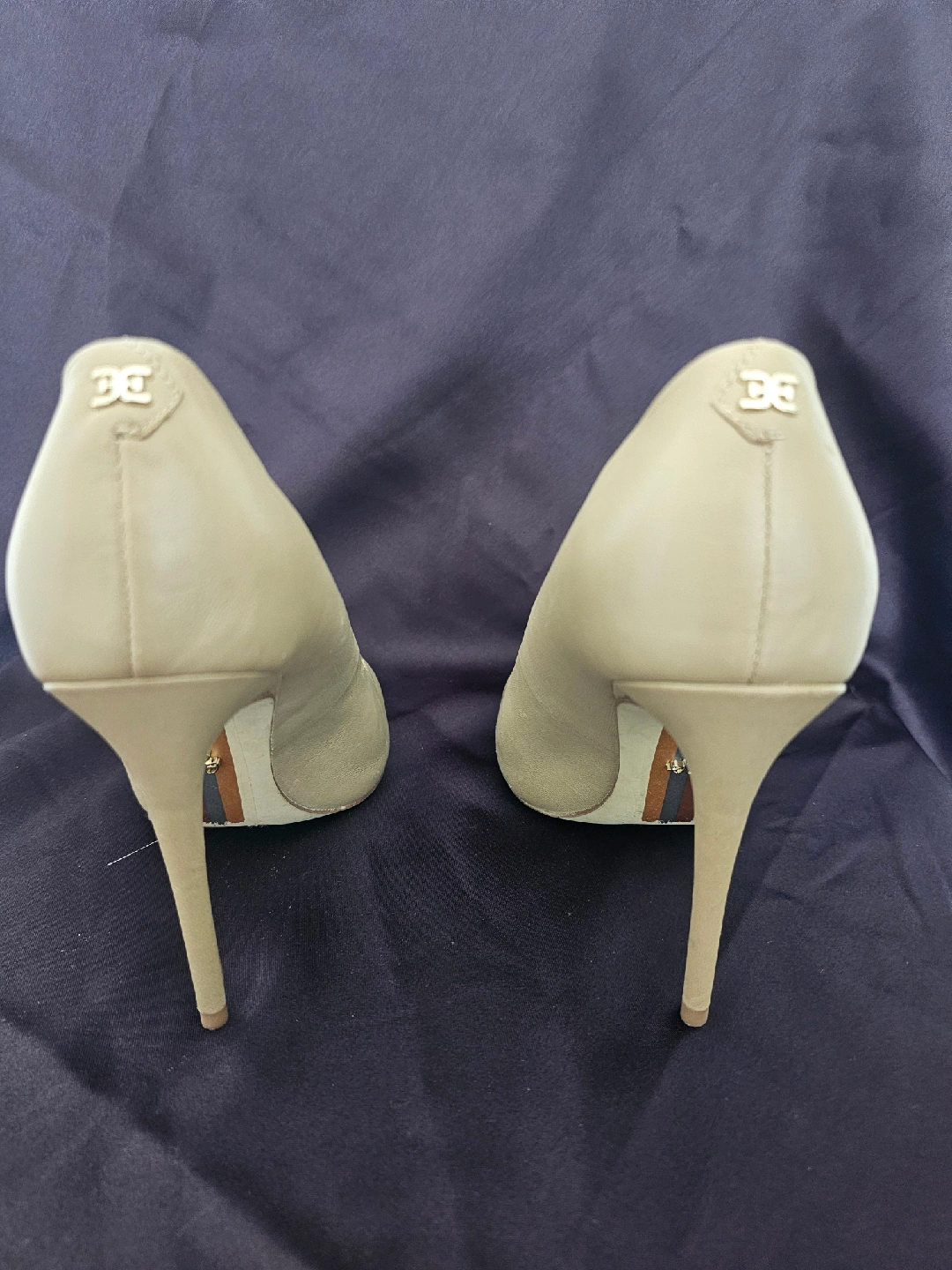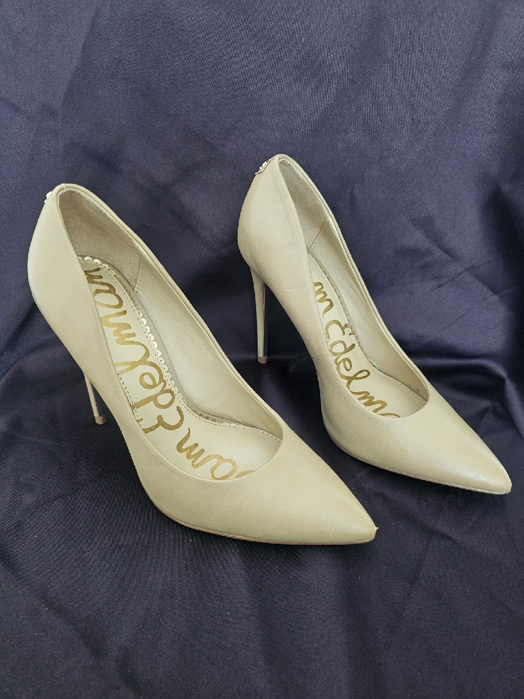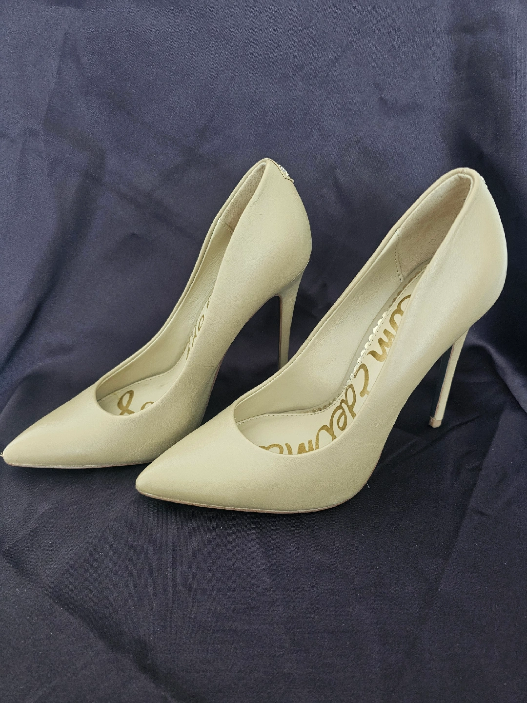 These are a pair of Sam Edelman heels (stiletto) in a lovely beige colour. They're made of leather and have a classic, elegant look. They have a small scruff in the right toe, but everything else is like new. Very comfortable and versatile. Size 5 $50 Open to offers Pick up only Cash only near WESTON GO/UP train station