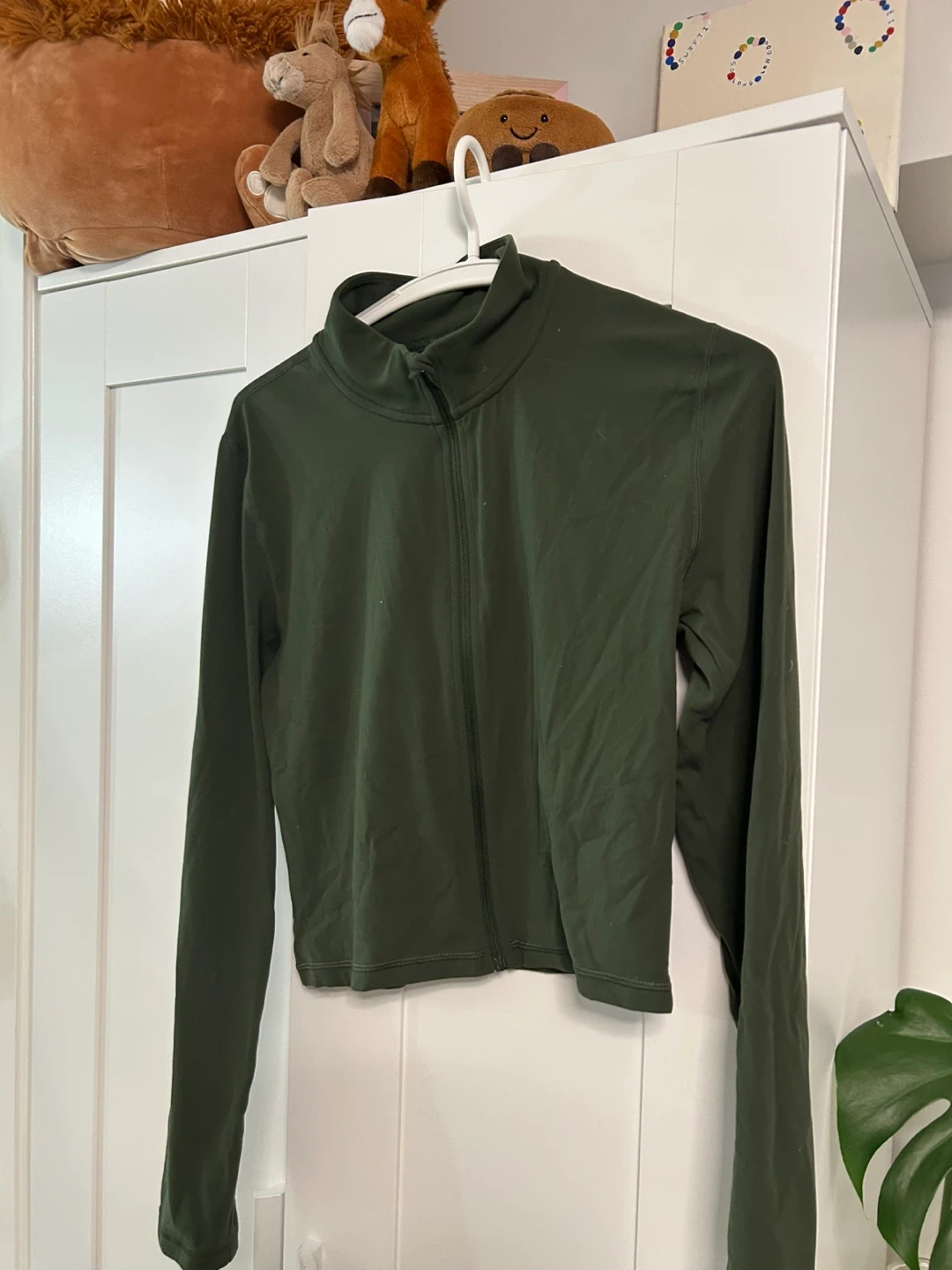 Selling a Tna Action zip-up jacket in a lovely dark green colour! It's a size large and in great condition. Perfect for layering or wearing on its own for a workout or casual look