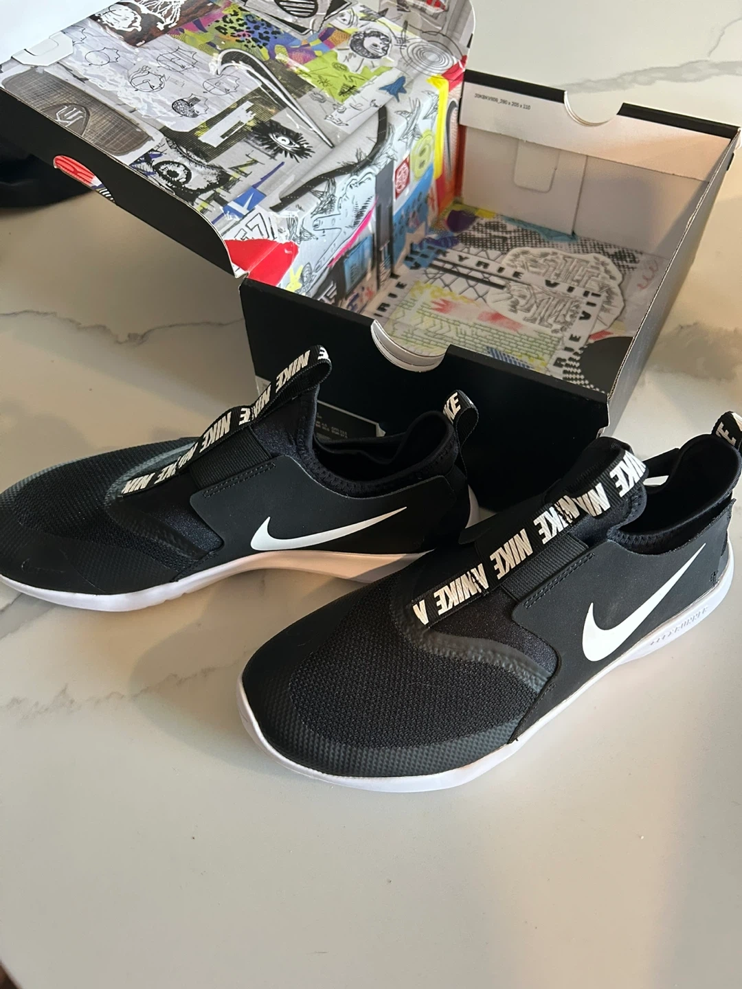 Selling a pair of Nike Flex Advance shoes in black, size 7. They're in great shape and come with the original box. These are super easy for kids to slip on and off themselves!