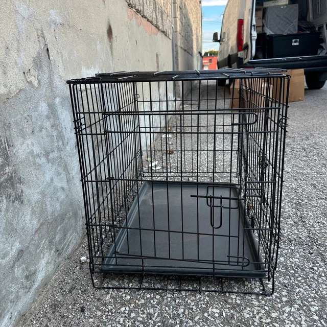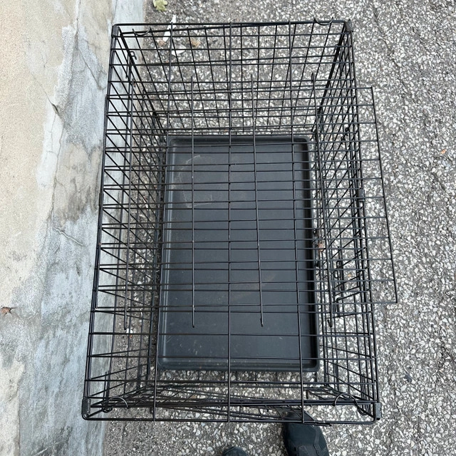 This foldable metal dog crate is a medium size, perfect for travel or home use. The crate features a removable tray for easy cleaning and provides a secure space for your furry friend. This crate has been previously used and shows some signs of wear, but is still in good working condition. Specifications: * Type: Dog Crate * Size: Medium * Material: Metal * Features: Foldable, Removable Tray Looking at similar crates, a reasonable price for this crate would be $45. Cash accepted.