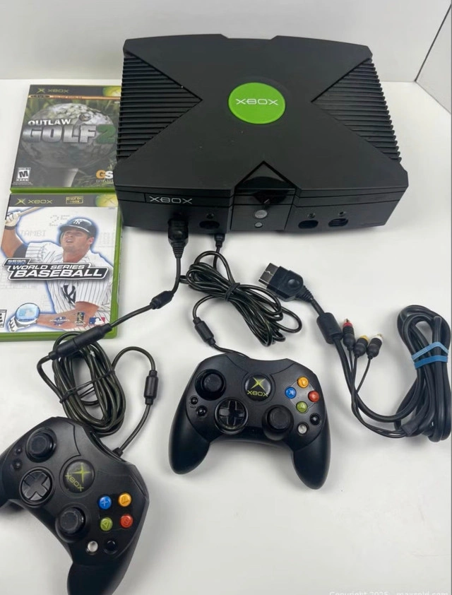 Dive into retro gaming with this used Original Xbox console bundle, complete with two controllers and two games. This console is ready to play and in good working condition, perfect for reliving classic gaming moments. Key Features: * Original Xbox Console * 2 Controllers * 2 Games (Outlaw Golf, World Series Baseball 2k3) * All necessary cables included If you're seeing this ad, the Xbox is still up for grabs, ready to bring some classic gaming fun to its new home!